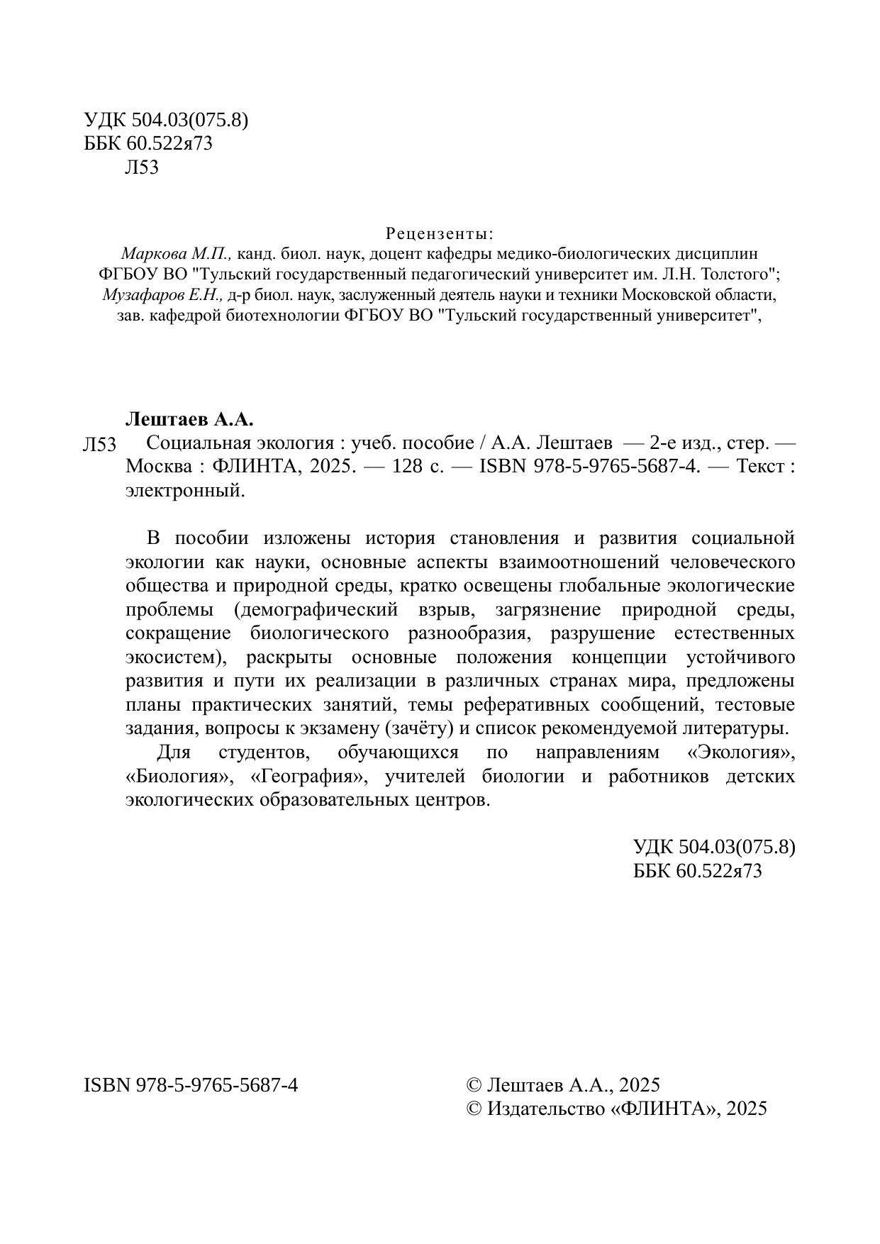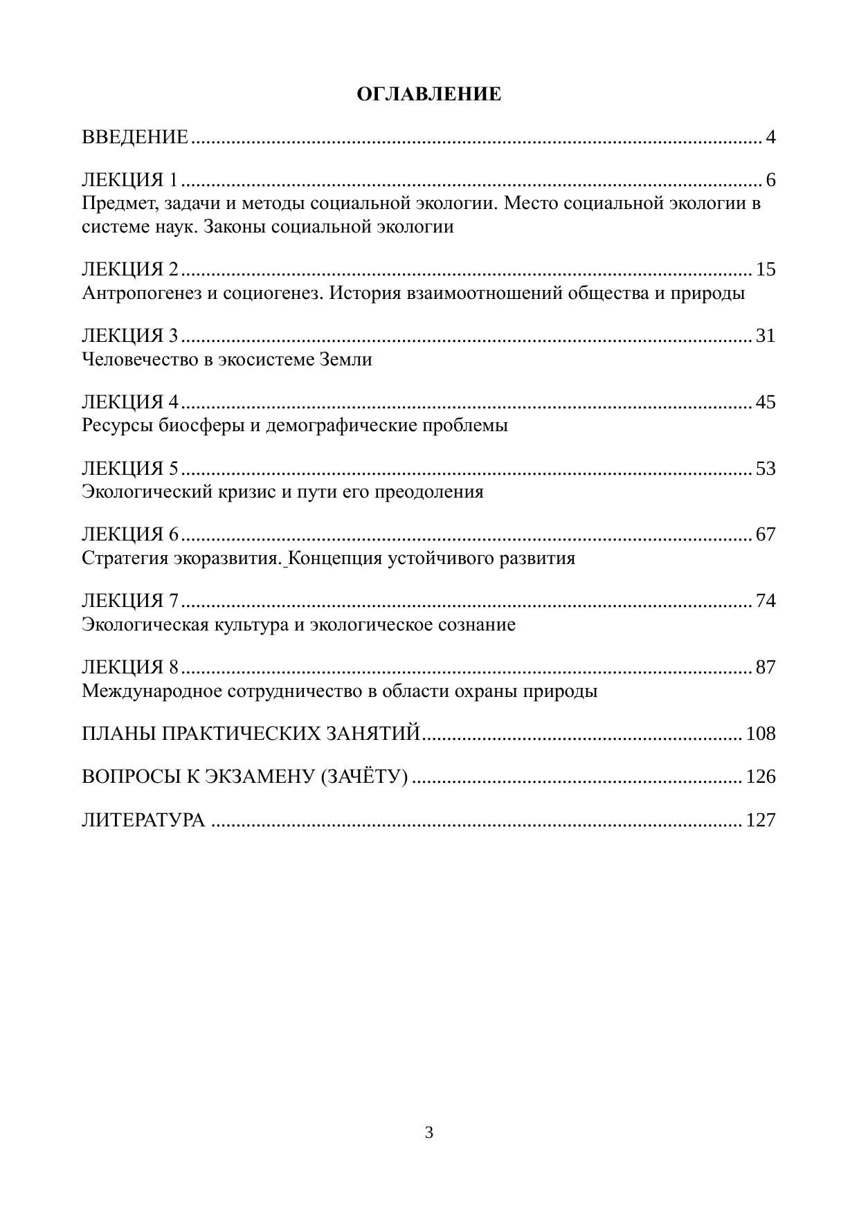 В пособии изложены история становления и развития социальной экологии как науки, основные аспекты взаимоотношений человеческого общества и природной среды, кратко освещены глобальные экологические проблемы (демографический взрыв, загрязнение природной среды, сокращение биологического разнообразия, разрушение естественных экосистем), раскрыты основные положения концепции устойчивого развития и пути их реализации в различных странах мира, предложены планы практических занятий, темы реферативных сообщений, тестовые задания, вопросы к экзамену (зачёту) и список рекомендуемой литературы.