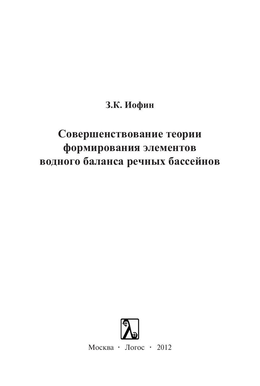 Совершенствование теории формирования элементов водного баланса речных бассейнов