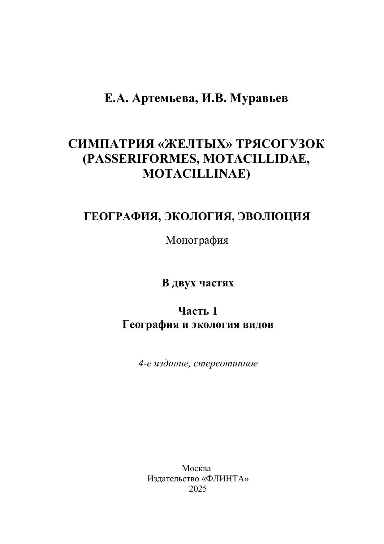 Симпатрия «желтых» трясогузок (Passeriformes, Motacillidae,Motacillinae) география, экология, эволюция. В двух частях. Часть 1. География и экология видов
