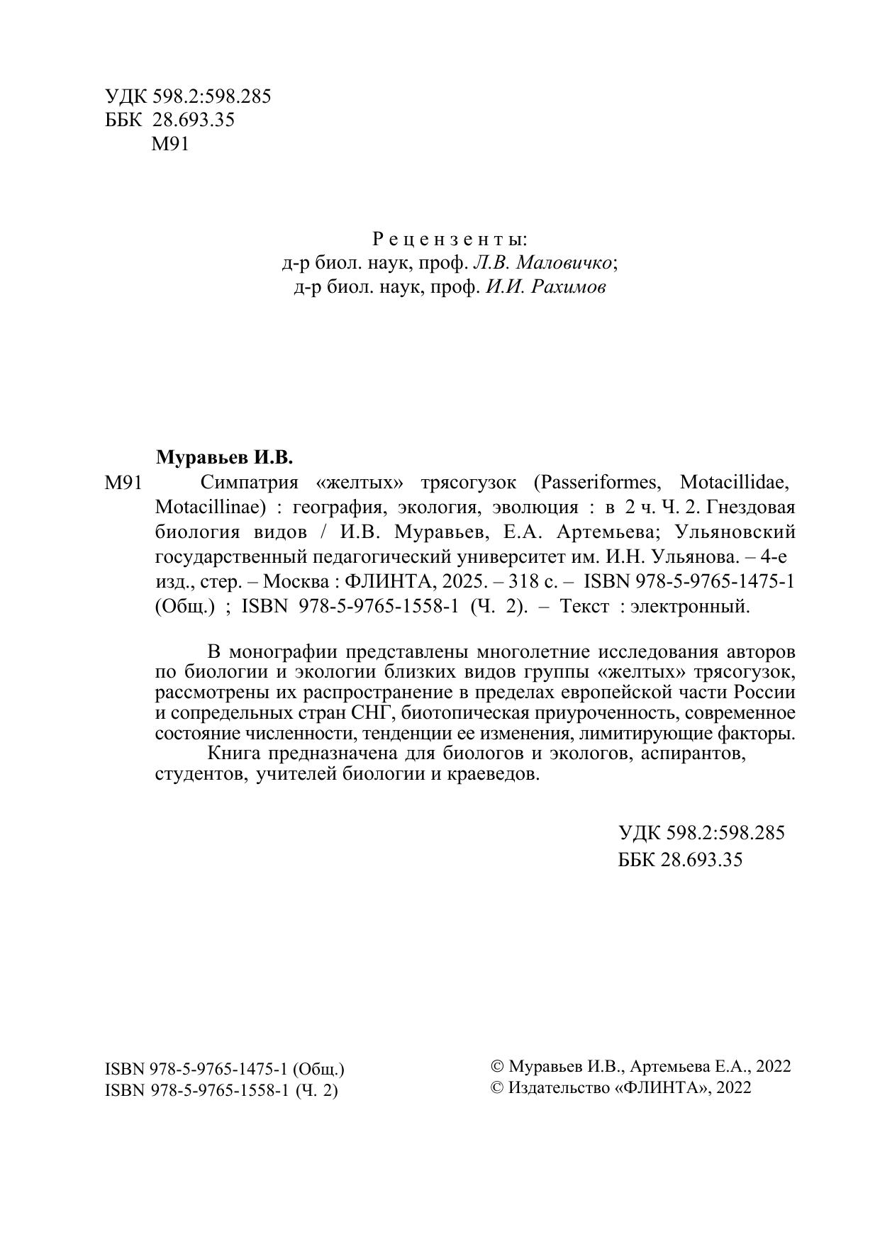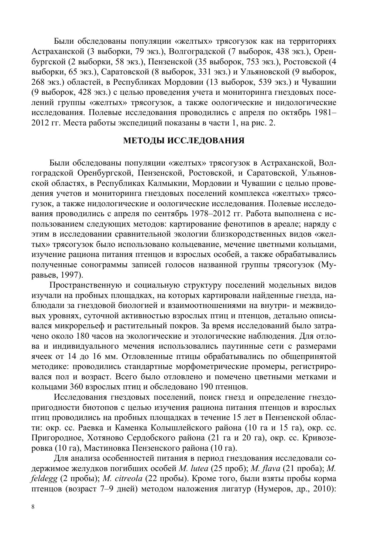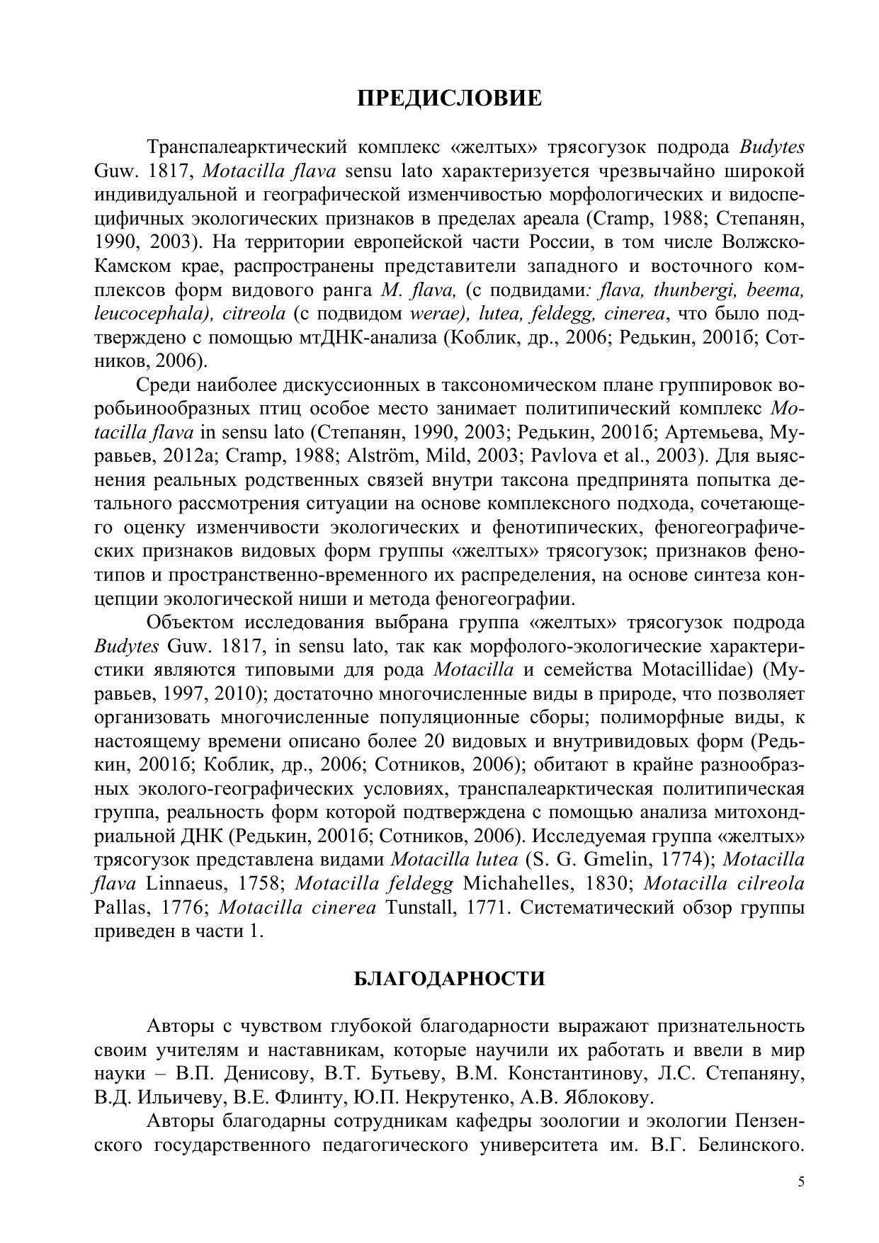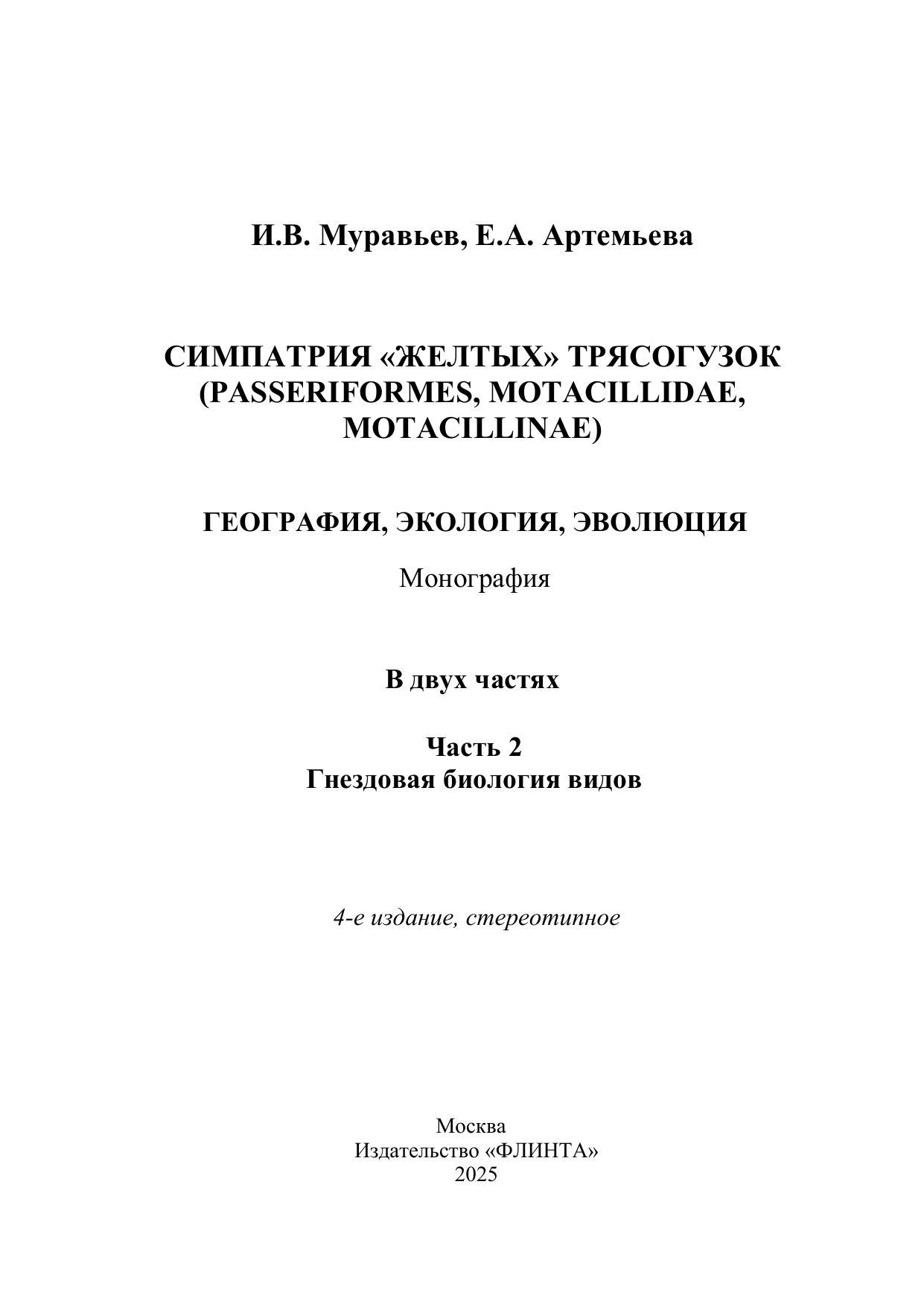 Симпатрия «желтых» трясогузок (Passeriformes, Motacillidae,Motacillinae) география, экология, эволюция. В двух частях. Часть 2. Гнездовая биология видов