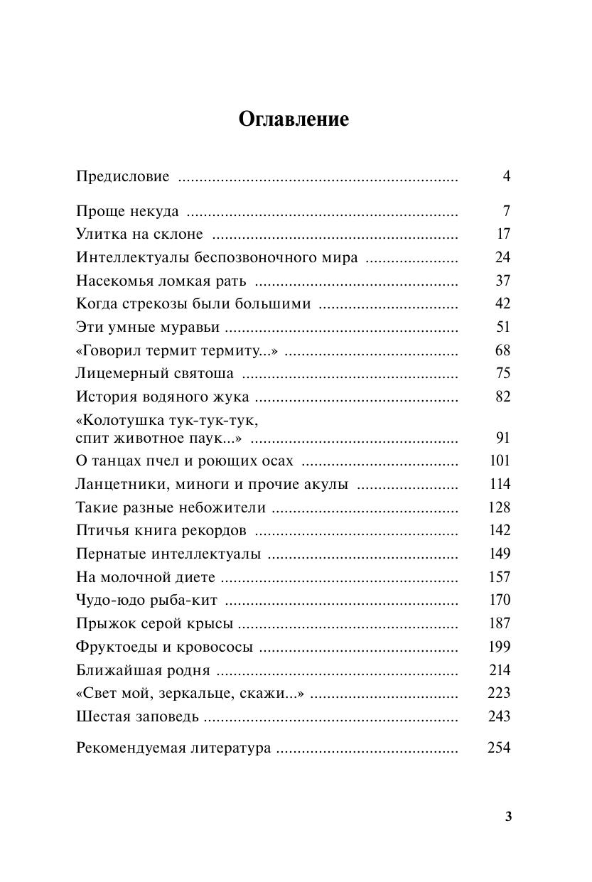 Книга посвящена наиболее интересным феноменам животного мира. Она рассказывает о быстрокрылых стрекозах и умных муравьях, о термитах-строителях и пчелах-танцовщицах, заботливых синицах и сообразительных крысах, о трогательных ленивцах и полных достоинства обезьянах. Читатель узнает о том, что киты, по всей видимости, произошли от древних копытных, а некоторые доисторические птицы были когда-то самыми крупными и опасными хищниками. Особое внимание уделено автором вопросам этологии – науки, которая изучает нравы и обычаи животных. Книга доставит немало приятных минут всем тем, кто интересуется биологией и разнообразием жизни на нашей планете.