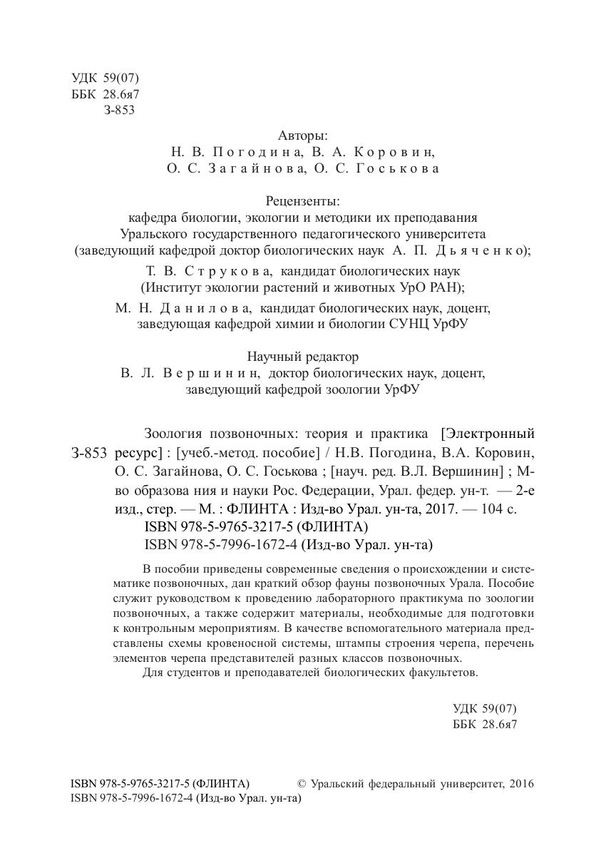 В пособии приведены современные сведения о происхождении и систематике позвоночных, дан краткий обзор фауны позвоночных Урала. Пособие служит руководством к проведению лабораторного практикума по зоологии позвоночных, а также содержит материалы, необходимые для подготовки к контрольным мероприятиям. В качестве вспомогательного материала представлены схемы кровеносной системы, штампы строения черепа, перечень элементов черепа представителей разных классов позвоночных. Для студентов и преподавателей биологических факультетов.