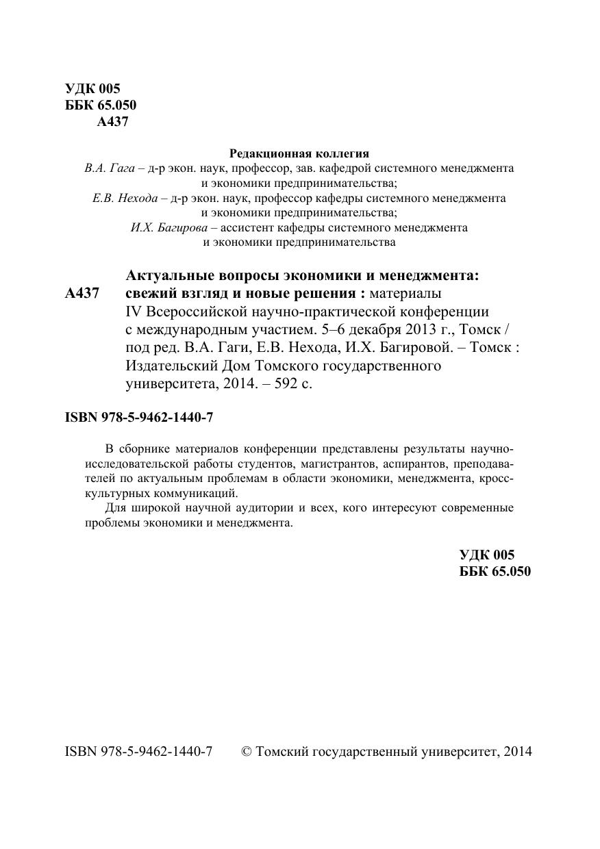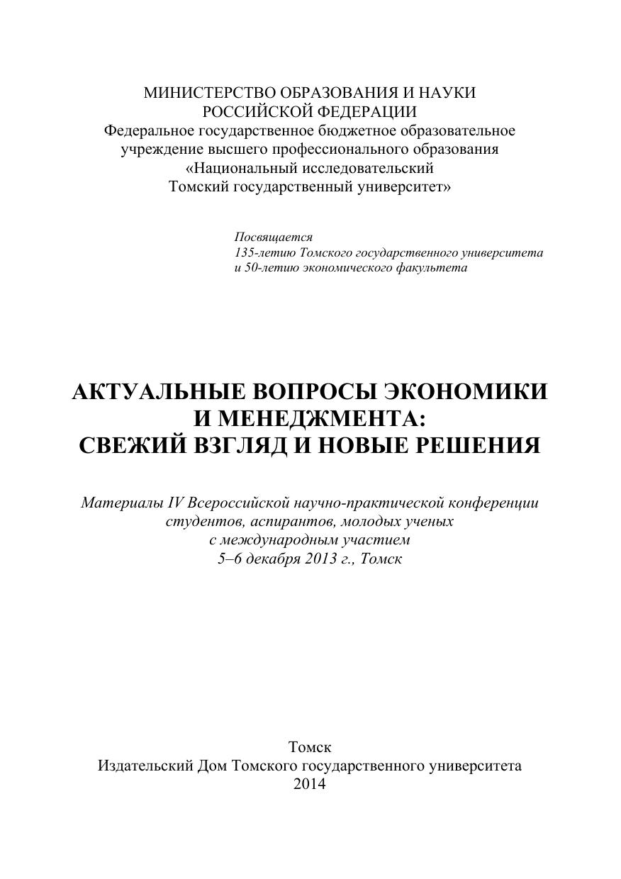 Актуальные вопросы экономики и менеджмента: свежий взгляд и новые решения: материалы IV Всероссийской научно-практической конференции с международным участием. 5–6 декабря 2013 г., Томск