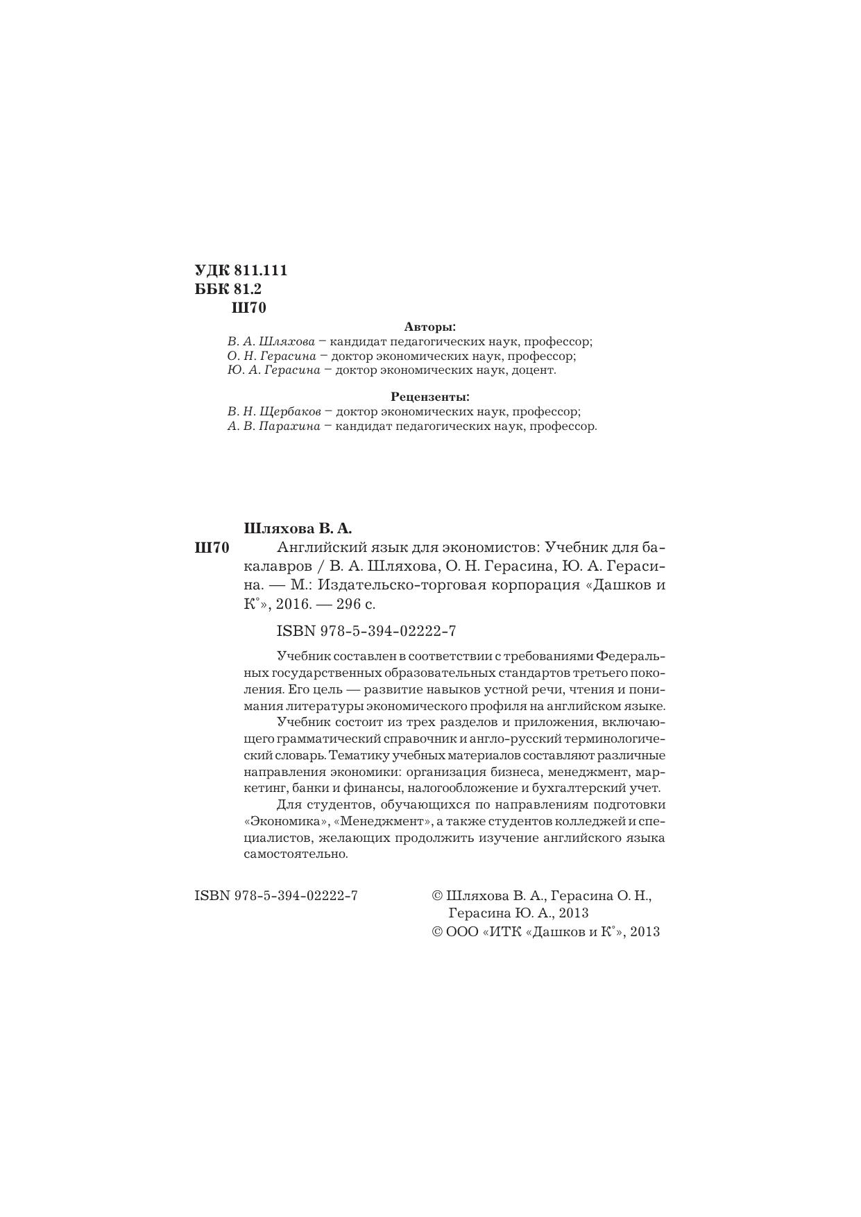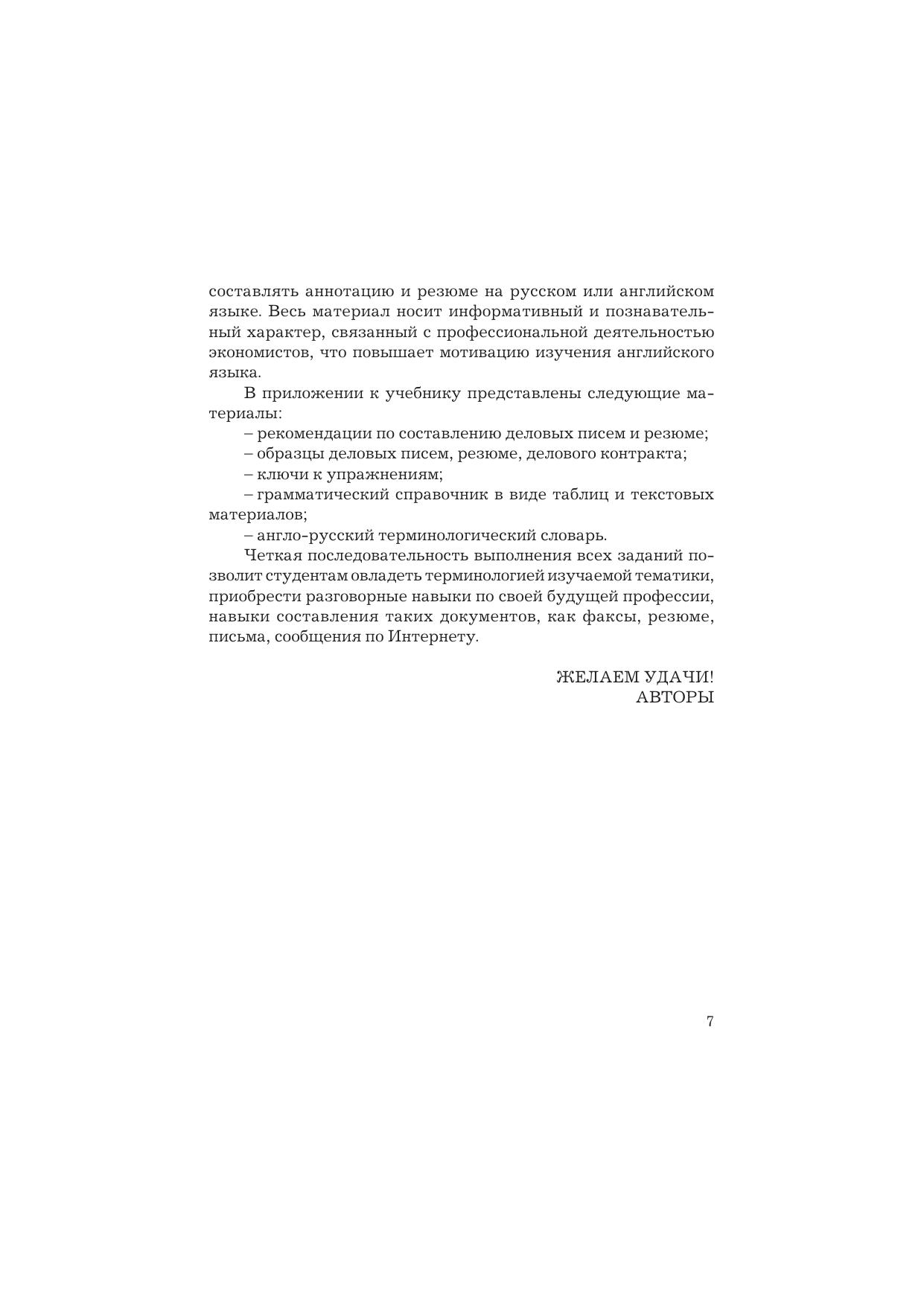 Учебник составлен в соответствии с требованиями Федеральных государственных образовательных стандартов третьего поколения. Его цель - развитие навыков устной речи, чтения, понимания литературы экономического профиля на английском языке. Учебник состоит из трех разделов и приложения, включающего грамматический справочник и англо-русский терминологический словарь. Тематику учебных материалов составляют различные направления экономики: организация бизнеса, менеджмент, маркетинг, банки и финансы, налогообложение и бухгалтерский учет. Для студентов, обучающихся по направлениям подготовки "Экономика", "Менеджмент", а также студентов колледжей и специалистов, желающих продолжить изучение английского языка самостоятельно.