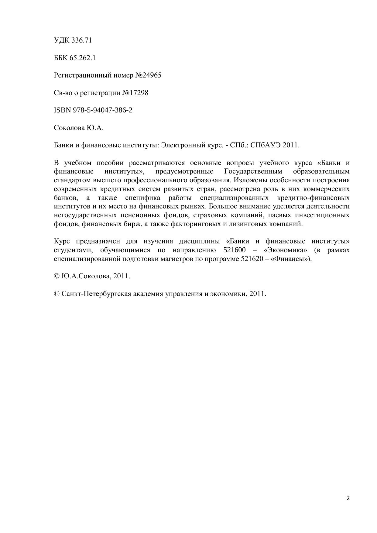 В учебном пособии рассматриваются основные вопросы учебного курса «Банки и финансовые институты», предусмотренные Государственным образовательным стандартом высшего профессионального образования. Изложены особенности построения современных кредитных систем развитых стран, рассмотрена роль в них коммерческих банков, а также специфика работы специализированных кредитно-финансовых институтов и их место на финансовых рынках. Большое внимание уделяется деятельности негосударственных пенсионных фондов, страховых компаний, паевых инвестиционных фондов, финансовых бирж, а также факторинговых и лизинговых компаний. Курс предназначен для изучения дисциплины «Банки и финансовые институты» студентами, обучающимися по направлению 521600 – «Экономика» (в рамках специализированной подготовки магистров по программе 521620 – «Финансы»). Электронный курс.