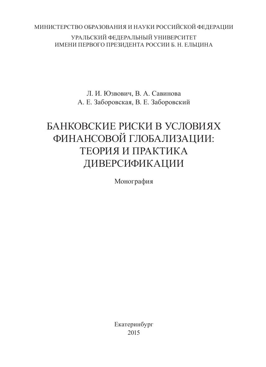 Банковские риски в условиях финансовой глобализации: теория и практика диверсификации: монография