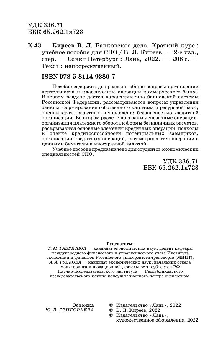 Пособие содержит два раздела: общие вопросы организации деятельности и классические операции коммерческого банка. В первом разделе дается характеристика банковской системы Российской Федерации, рассматриваются вопросы управления банком, формирования собственного капитала и ресурсной базы, оценки качества активов и управления безопасностью кредитной организации. Во втором разделе показаны депозитные операции, организация платежного оборота и формы безналичных расчетов, раскрываются основные элементы кредитных операций, подходы к оценке кредитоспособности потенциальных заемщиков, организация кредитных операций, рассматриваются операции с ценными бумагами и иностранной валютой. Учебное пособие предназначено для студентов экономических специальностей СПО.