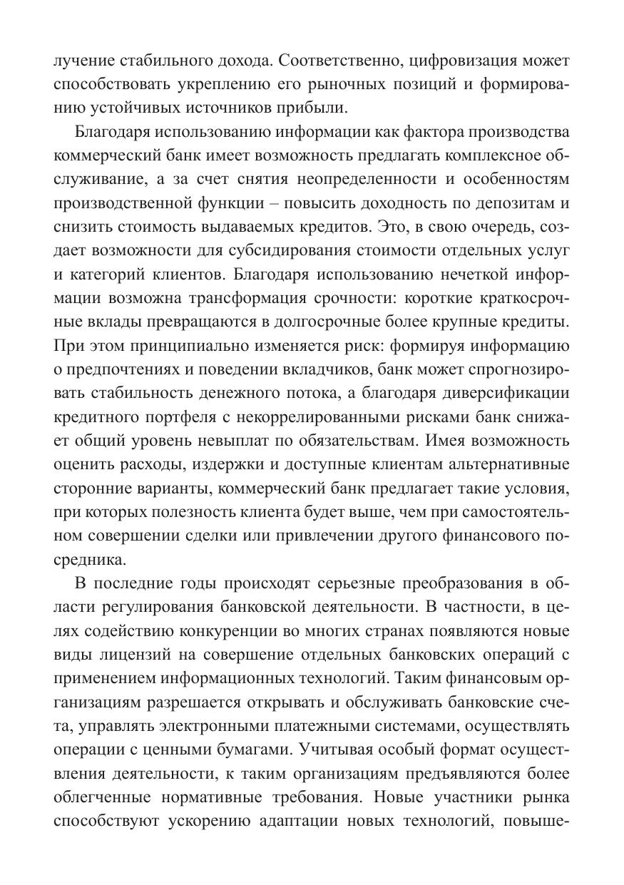 Основное внимание уделяется адаптации цифровых технологий в операционной деятельности коммерческих банков и их взаимодействию с клиентом. В монографии представлена оригинальная интерпретация предпосылок формирования новых моделей деятельности (банковские экосистемы, необанки, банкинг как услуга), содержится описание отечественного и зарубежного опыта цифровизации банковской деятельности.