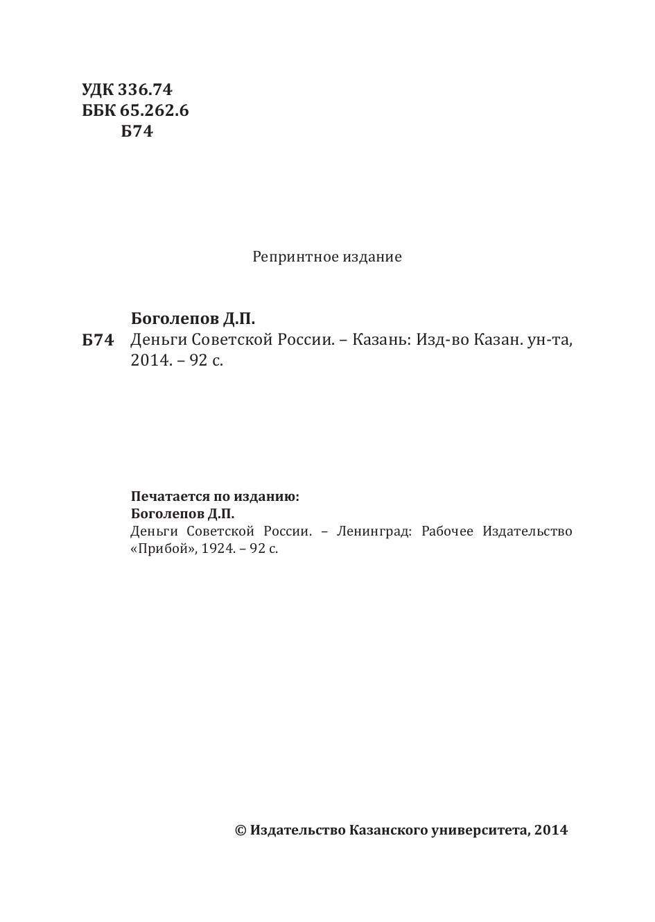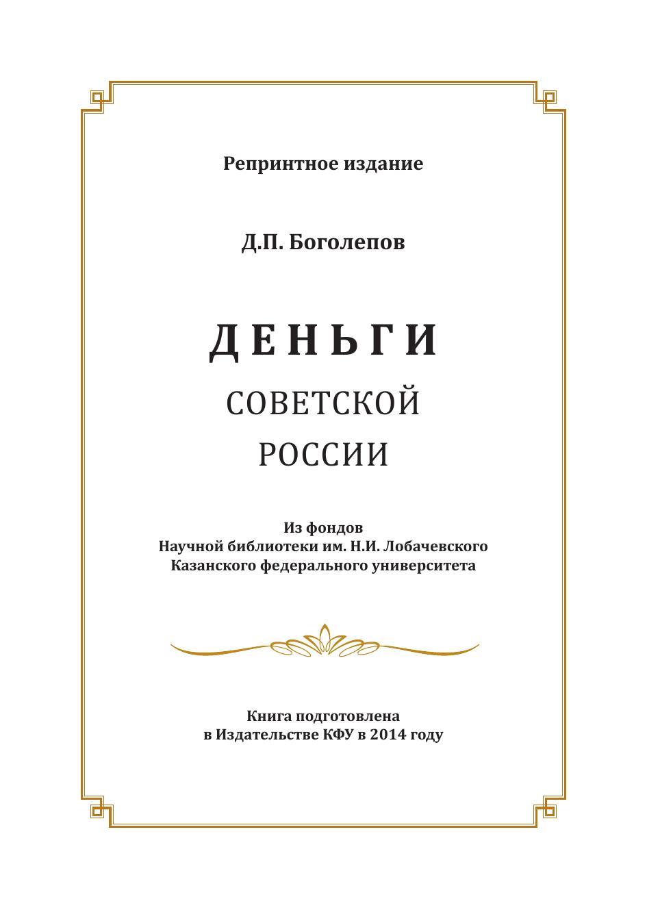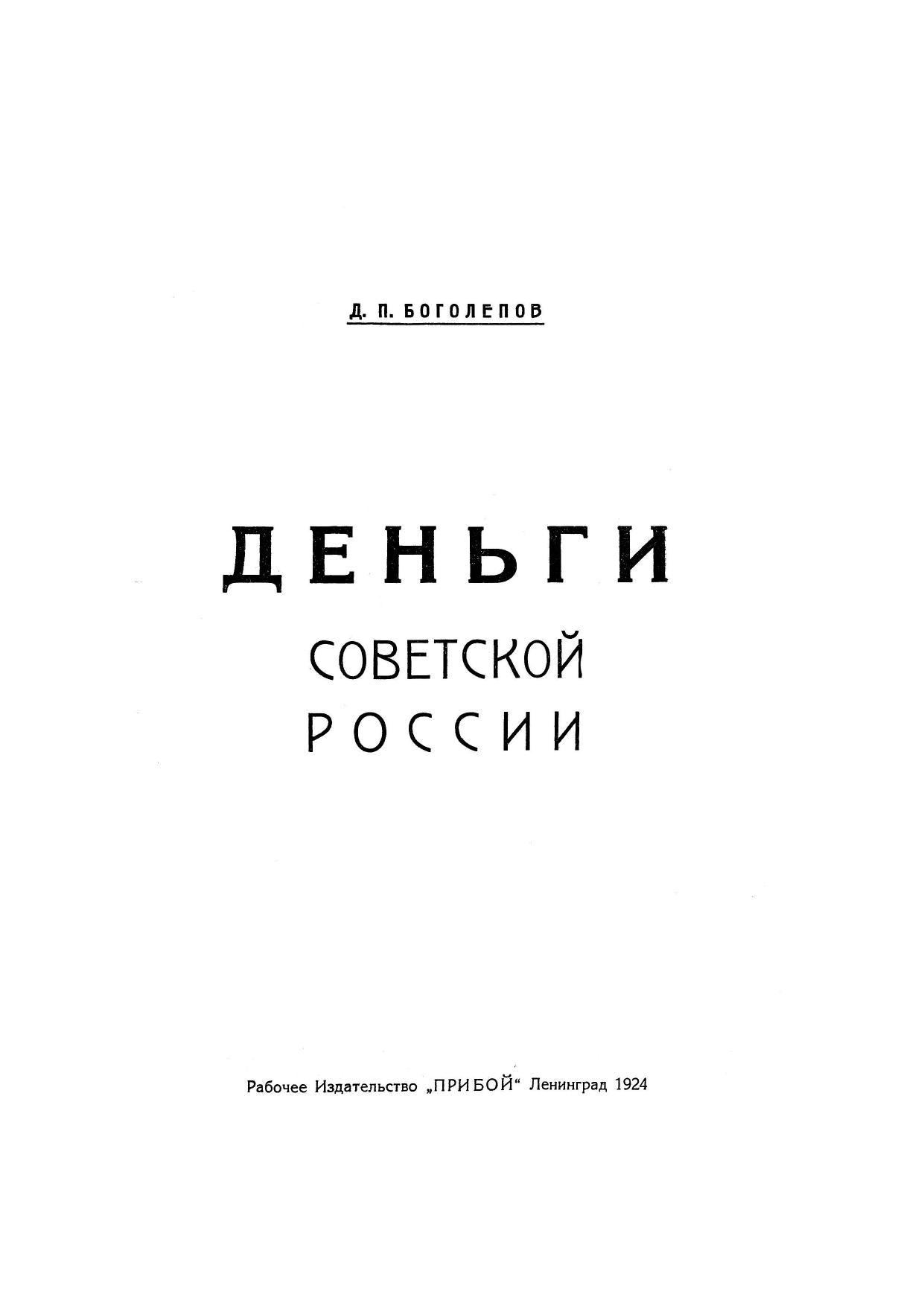 По изданию: Боголепов Д.П. Деньги Советской России. – Ленинград: Рабочее Издательство «Прибой», 1924. – 92 с.