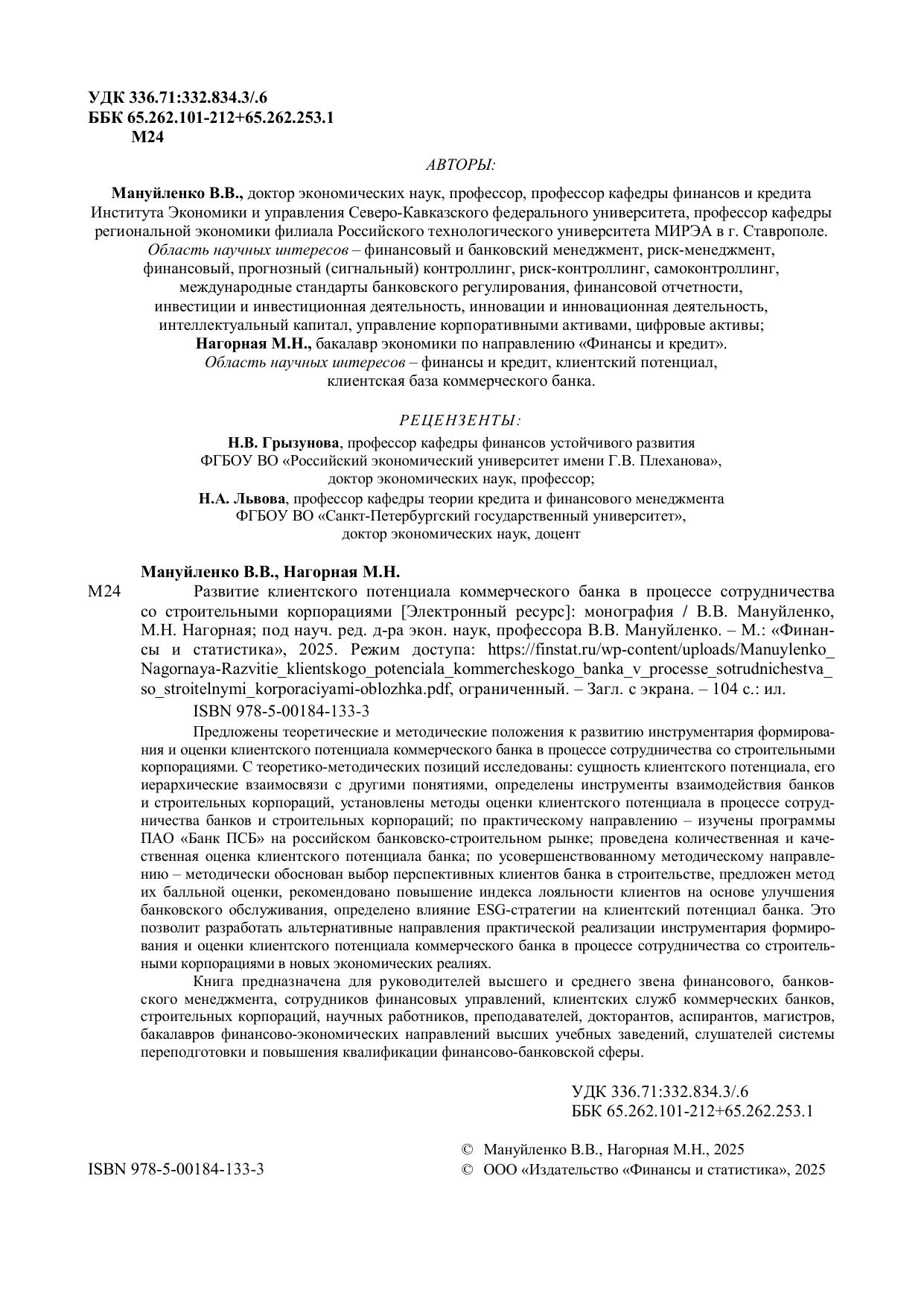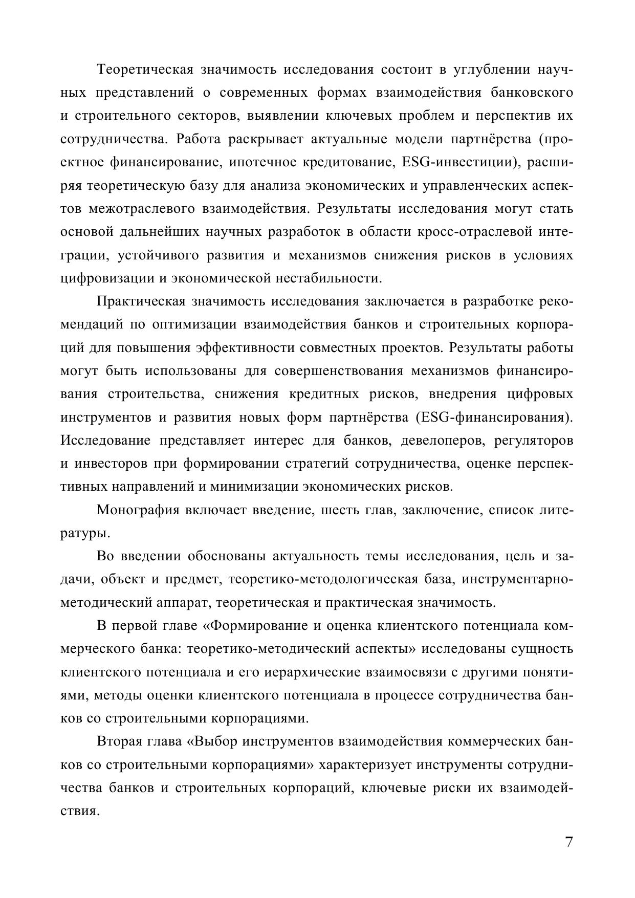 Предложены теоретические и методические положения к развитию инструментария формирования и оценки клиентского потенциала коммерческого банка в процессе сотрудничества со строительными корпорациями. С теоретико-методических позиций исследованы: сущность клиентского потенциала, его иерархические взаимосвязи с другими понятиями, определены инструменты взаимодействия банков и строительных корпораций, установлены методы оценки клиентского потенциала в процессе сотрудничества банков и строительных корпораций; по практическому направлению – изучены программы ПАО «Банк ПСБ» на российском банковско-строительном рынке; проведена количественная и качественная оценка клиентского потенциала банка; по усовершенствованному методическому направлению – методически обоснован выбор перспективных клиентов банка в строительстве, предложен метод их балльной оценки, рекомендовано повышение индекса лояльности клиентов на основе улучшения банковского обслуживания, определено влияние ESG-стратегии на клиентский потенциал банка. Это позволит разработать альтернативные направления практической реализации инструментария формирования и оценки клиентского потенциала коммерческого банка в процессе сотрудничества со строительными корпорациями в новых экономических реалиях. Книга предназначена для руководителей высшего и среднего звена финансового, банковского менеджмента, сотрудников финансовых управлений, клиентских служб коммерческих банков, строительных корпораций, научных работников, преподавателей, докторантов, аспирантов, магистров, бакалавров финансово-экономических направлений высших учебных заведений, слушателей системы переподготовки и повышения квалификации финансово-банковской сферы.