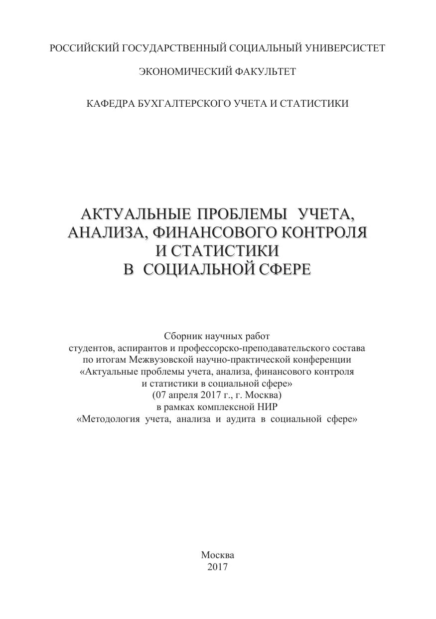 Актуальные проблемы учета, анализа, финансового контроля и статистики в социальной сфере