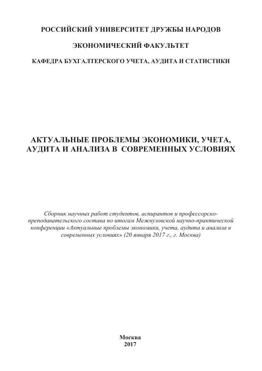 Актуальные проблемы экономики, учета, аудита и анализа в современных условиях: сборник Межвузовской конференции «Актуальные проблемы экономики, учета, аудита и анализа в современных условиях» (20 января 2017 г., г. Москва)