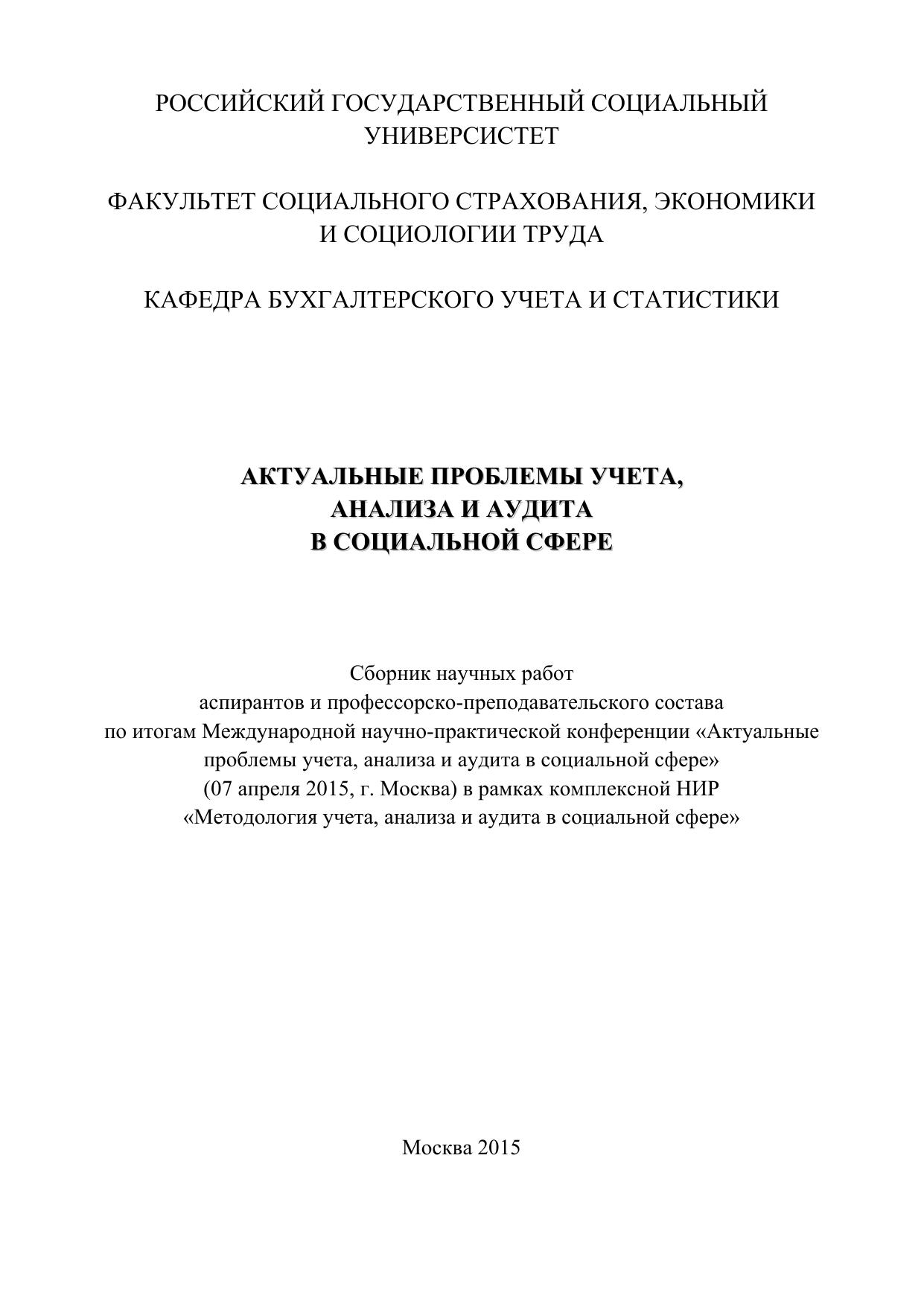 Актуальные проблемы учета, анализа и аудита в социальной сфере: Сборник международной конференции научных работ аспирантов и профессорско-преподавательского состава по итогам научно-практической конференции