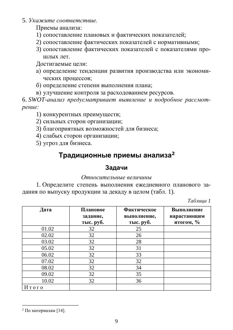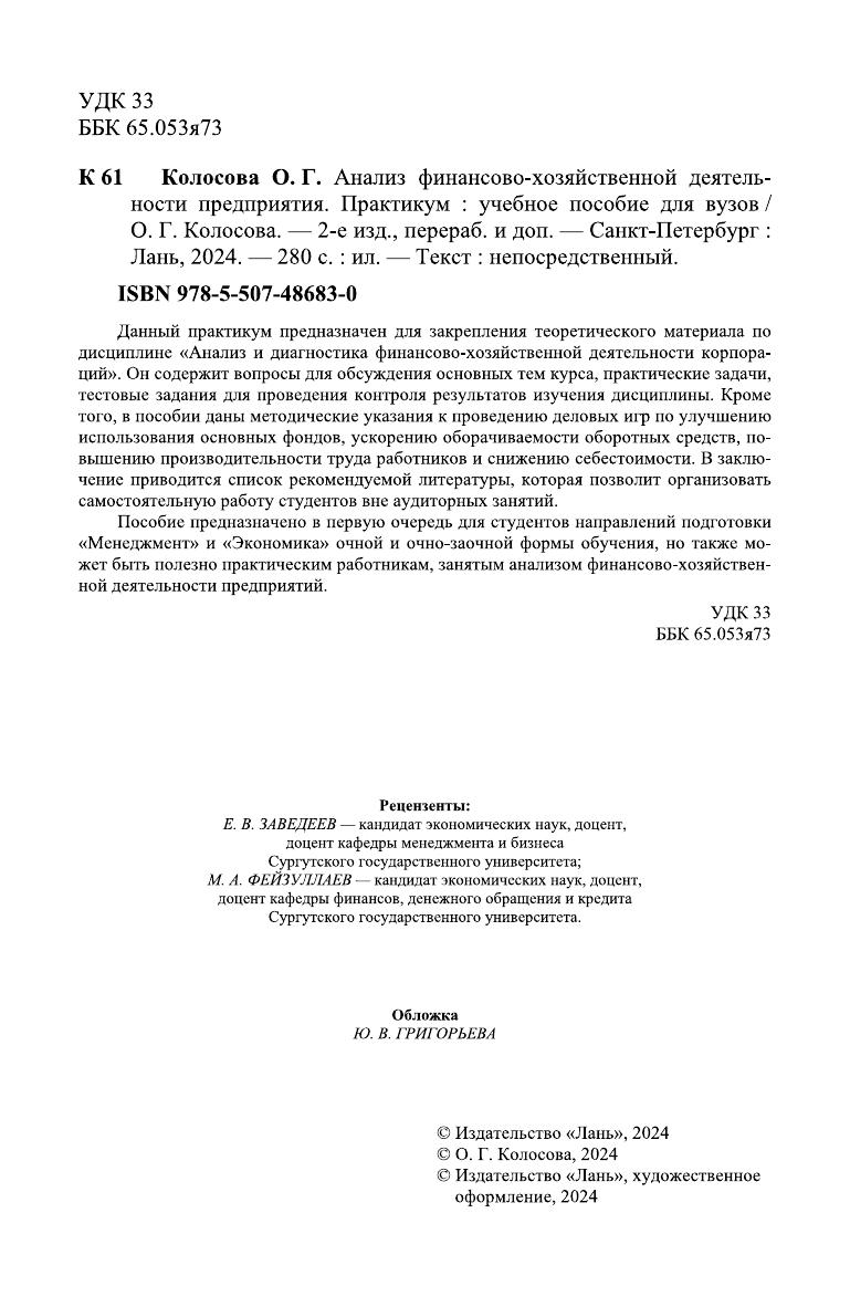 Данный практикум предназначен для закрепления теоретического материала по дисциплине «Анализ и диагностика финансово-хозяйственной деятельности корпораций». Он содержит вопросы для обсуждения основных тем курса, прак-тические задачи, тестовые задания для проведения контроля результатов изуче-ния дисциплины. Кроме того, в пособии даны методические указания к проведе-нию деловых игр по улучшению использования основных фондов, ускорению оборачиваемости оборотных средств, по-вышению производительности труда работников и снижению себестоимости. В заклю-чение приводится список реко-мендуемой литературы, которая позволит организовать самостоятельную работу студентов вне аудиторных занятий. Пособие предназначено в первую очередь для студентов направлений под-готовки «Менеджмент» и «Экономика» очной и очно-заочной формы обучения, но также может быть полезно практическим работникам, занятым анализом фи-нансово-хозяйствен-ной деятельности предприятий.