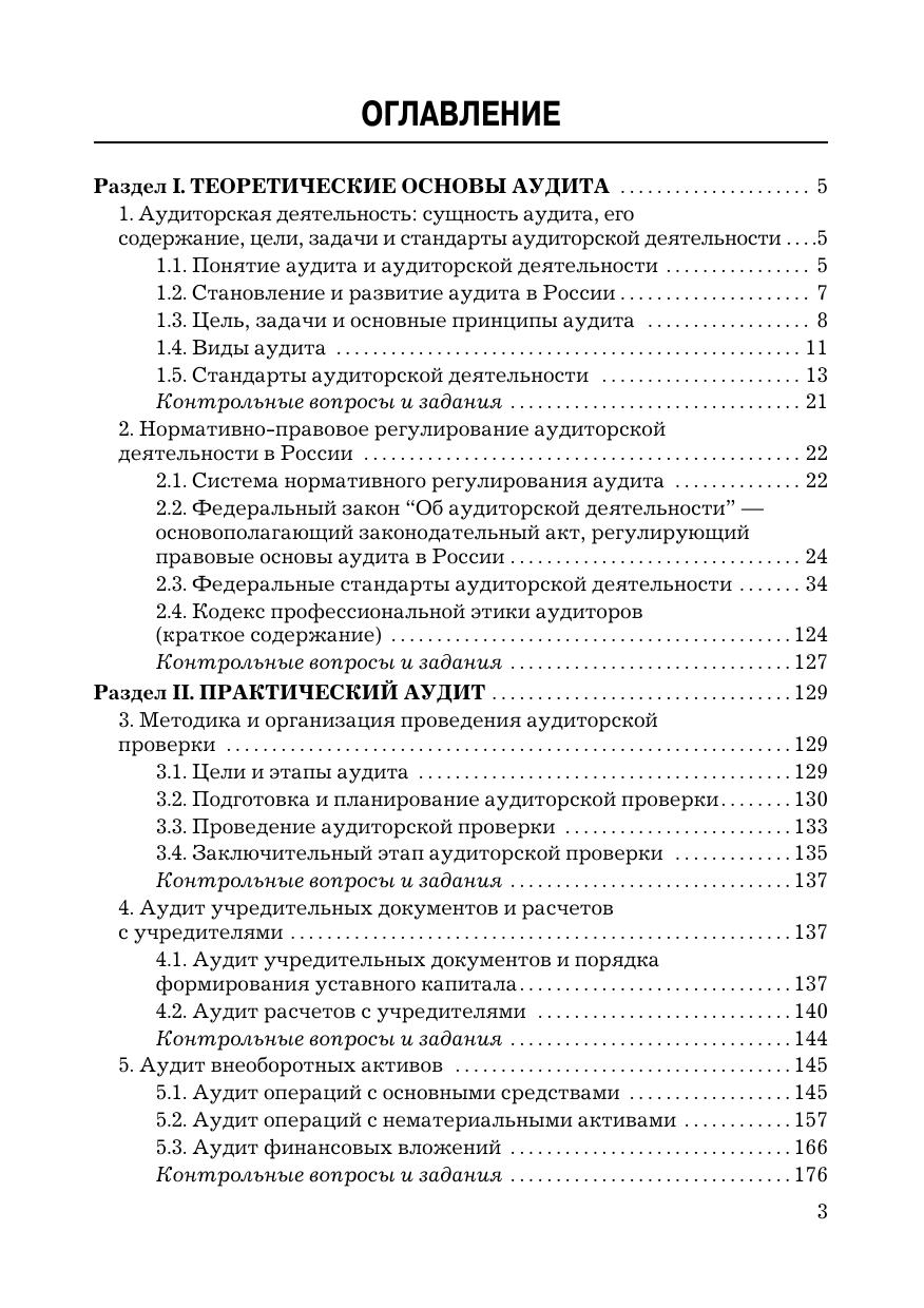 В учебнике раскрывается современное состояние теории и практики аудиторской деятельности в России. Он состоит их двух разделов. В первом разделе изложены теоретические основы аудита: понятие, цель, задачи, принципы, виды аудита, стандарты, нормативное регулирование аудиторской деятельности и этические нормы аудита. Второй раздел раскрывает вопросы практического аудита: методику и технологию проведения аудиторской проверки основных разделов и счетов бухгалтерского учета.