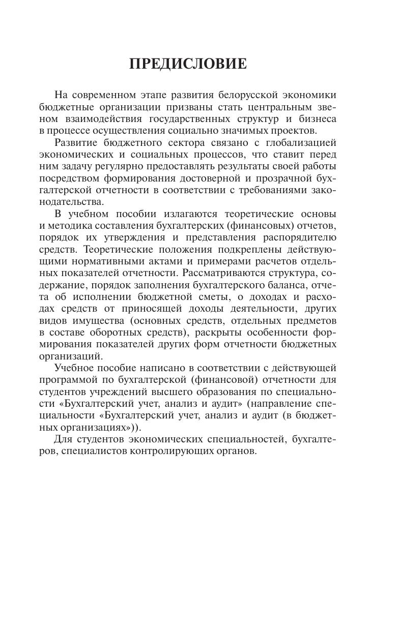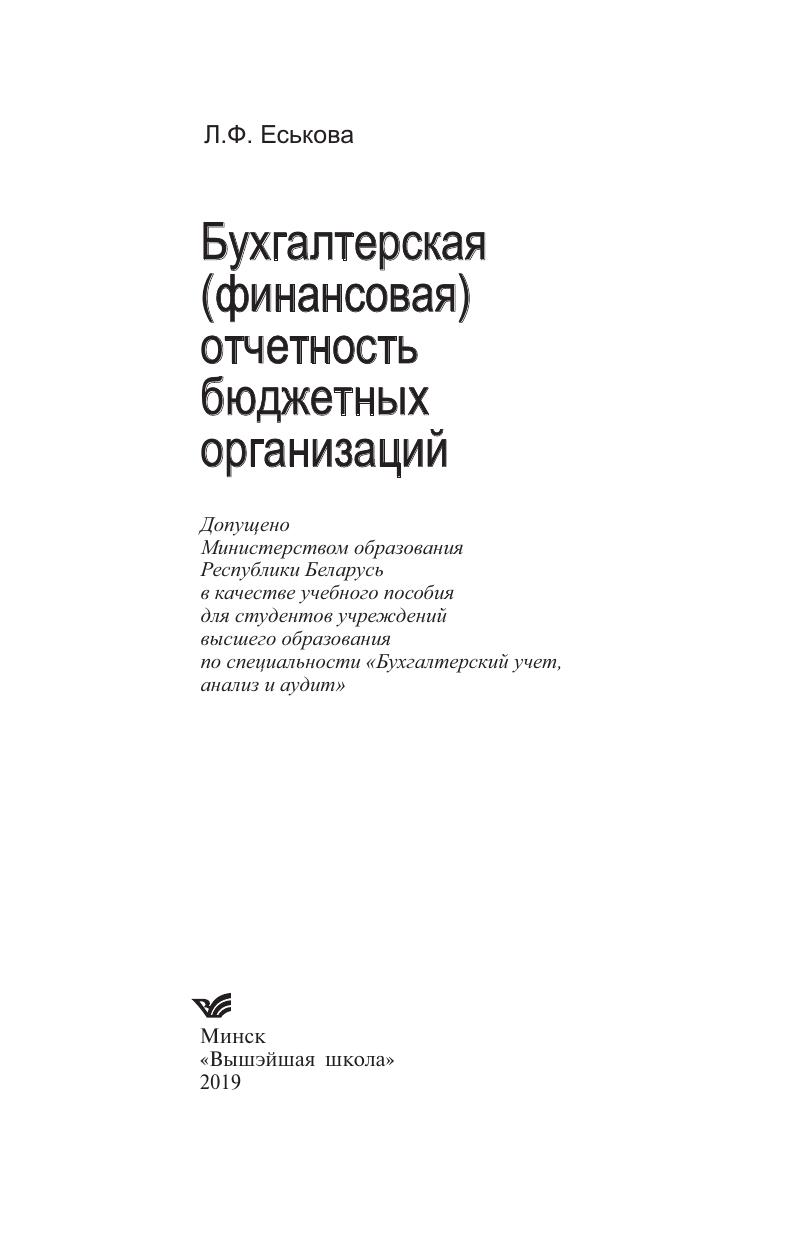 В учебном пособии изложен порядок составления бухгалтерской (финансовой) отчетности в бюджетных организациях, рассматриваются теоретические основы бухгалтерской отчетности, ее состав, структура, последовательность проведения подготовительных работ перед составлением отчетности, содержание основных форм, отражены особенности формирования отдельных показателей отчетности (подкреплены примерами, расчетами, таблицами). Приводится методика составления и заполнения форм отчетности, показана система взаимосвязи ее показателей. Для студентов учреждений высшего образования, обучающихся по специальности «Бухгалтерский учет, анализ и аудит», бухгалтеров, специалистов ведомственного контроля.