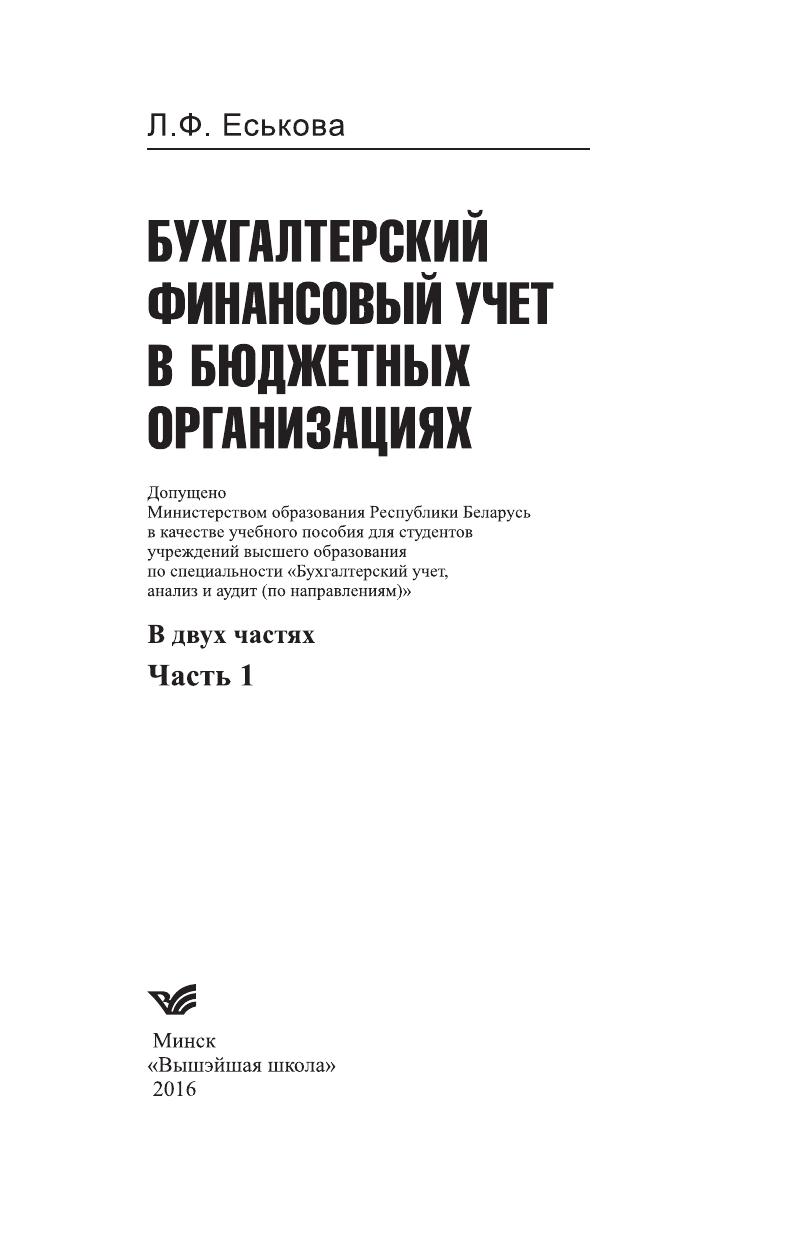 Рассматриваются основы построения бухгалтерского финансового учета в бюджетных организациях, учет бюджетного финансирования, денежных средств и расходов, расчетных операций, основных средств. Приводятся первичные учетные документы и учетные регистры, примеры, способствующие усвоению материала. Для студентов учреждений высшего образования по специальности «Бухгалтерский учет, анализ и аудит (по направлениям)». Полезно практическим работникам бюджетных организаций.