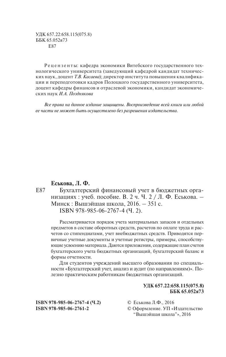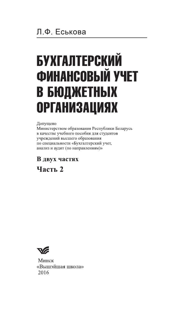 Бухгалтерский финансовый учет в бюджетных организациях: учебное пособие. В. 2 ч. Ч. 2