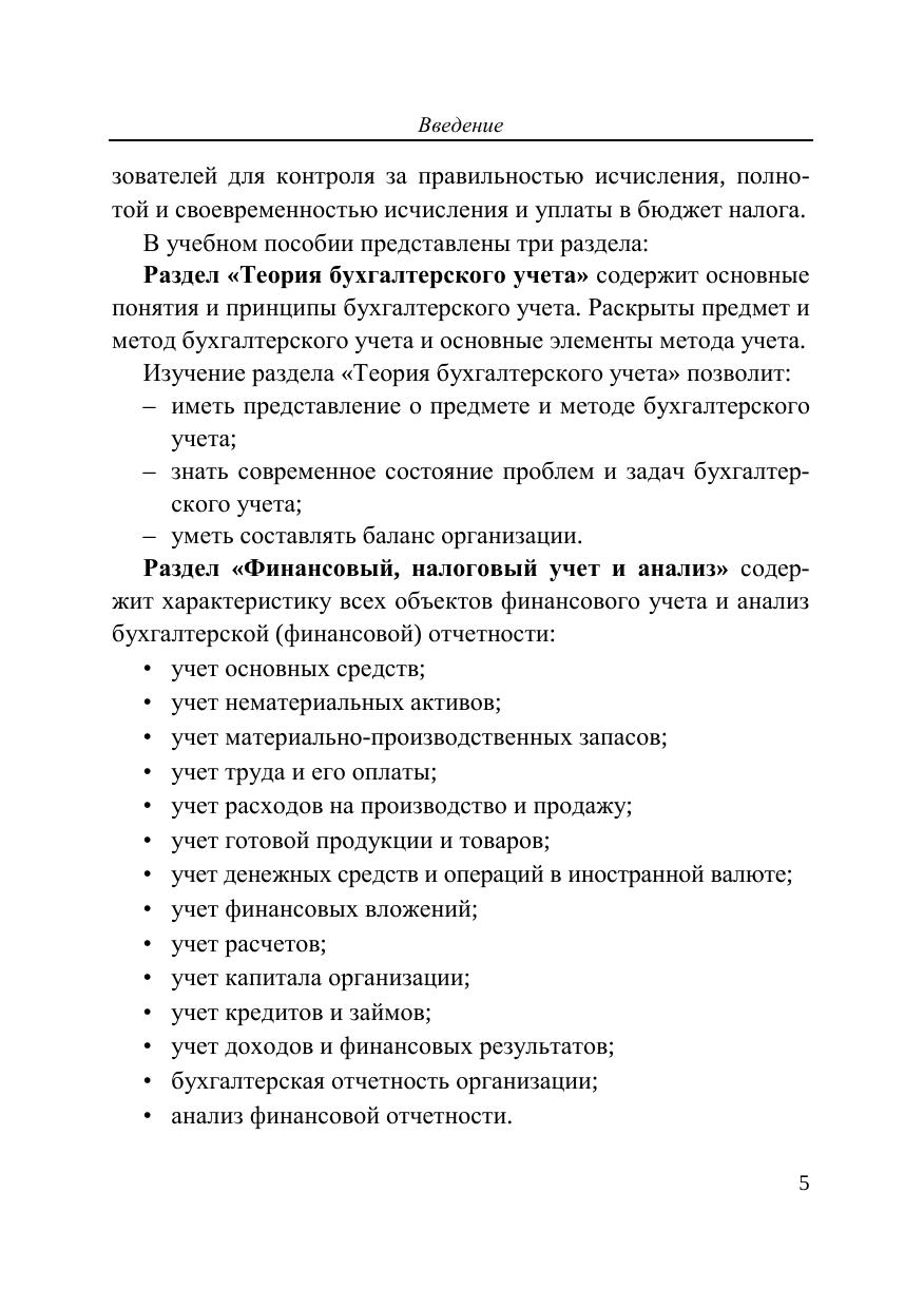 Учебное пособие состоит из трех частей: Теория бухгалтерского учета, Финансовый, налоговый учет и анализ, Управленческий учет. Финансовый и налоговый учет представлены в виде сравнительного анализа норм бухгалтерского учета и налогового законодательства. Рассмотрены структура бухгалтерской отчетности и ее анализ. Управленческий учет рассмотрен как подсистема бухгалтерского учета. Соответствует Федеральному государственному образовательному стандарту высшего профессионального образования третьего поколения по направлению 080100 «Экономика» по профилям «Бухгалтерский учет, анализ и аудит» и «Финансы и кредит». Для студентов, слушателей системы послевузовского образования, экономистов, бухгалтеров, аудиторов.
