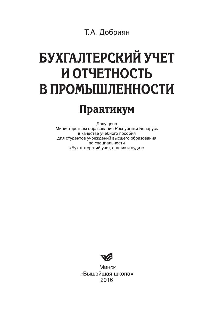 Бухгалтерский учет и отчетность в промышленности. Практикум: учебное пособие