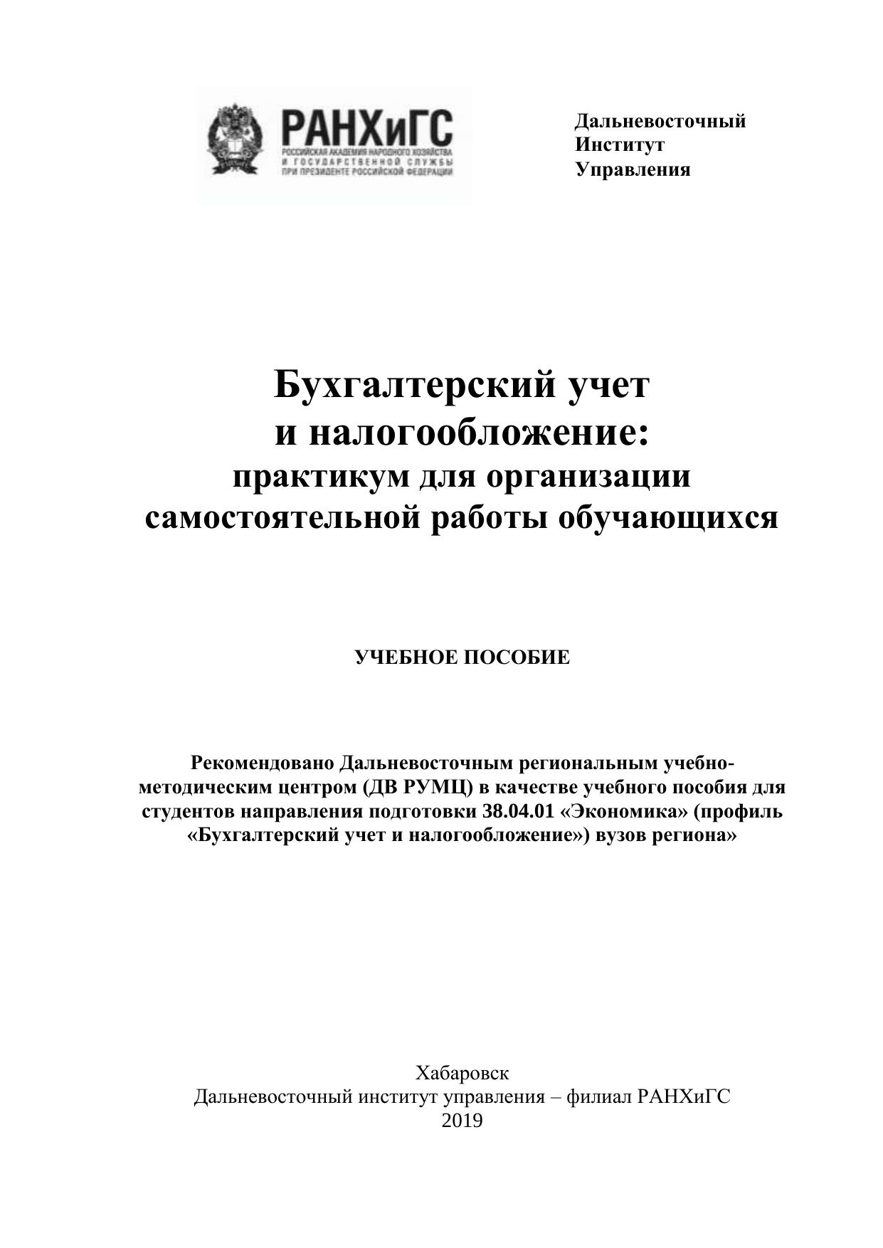 Бухгалтерский учет и налогообложение: практикум для организации самостоятельной работы обучающихся
