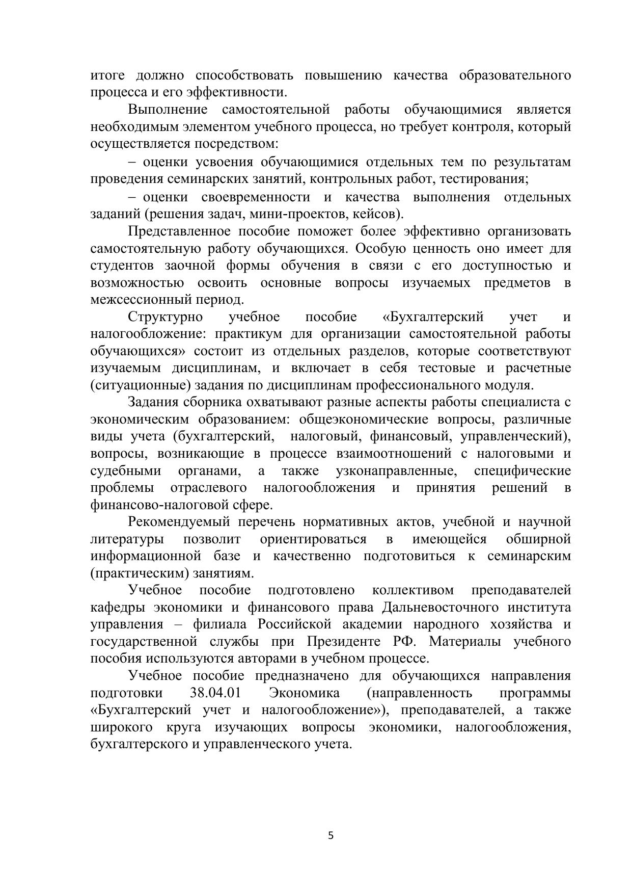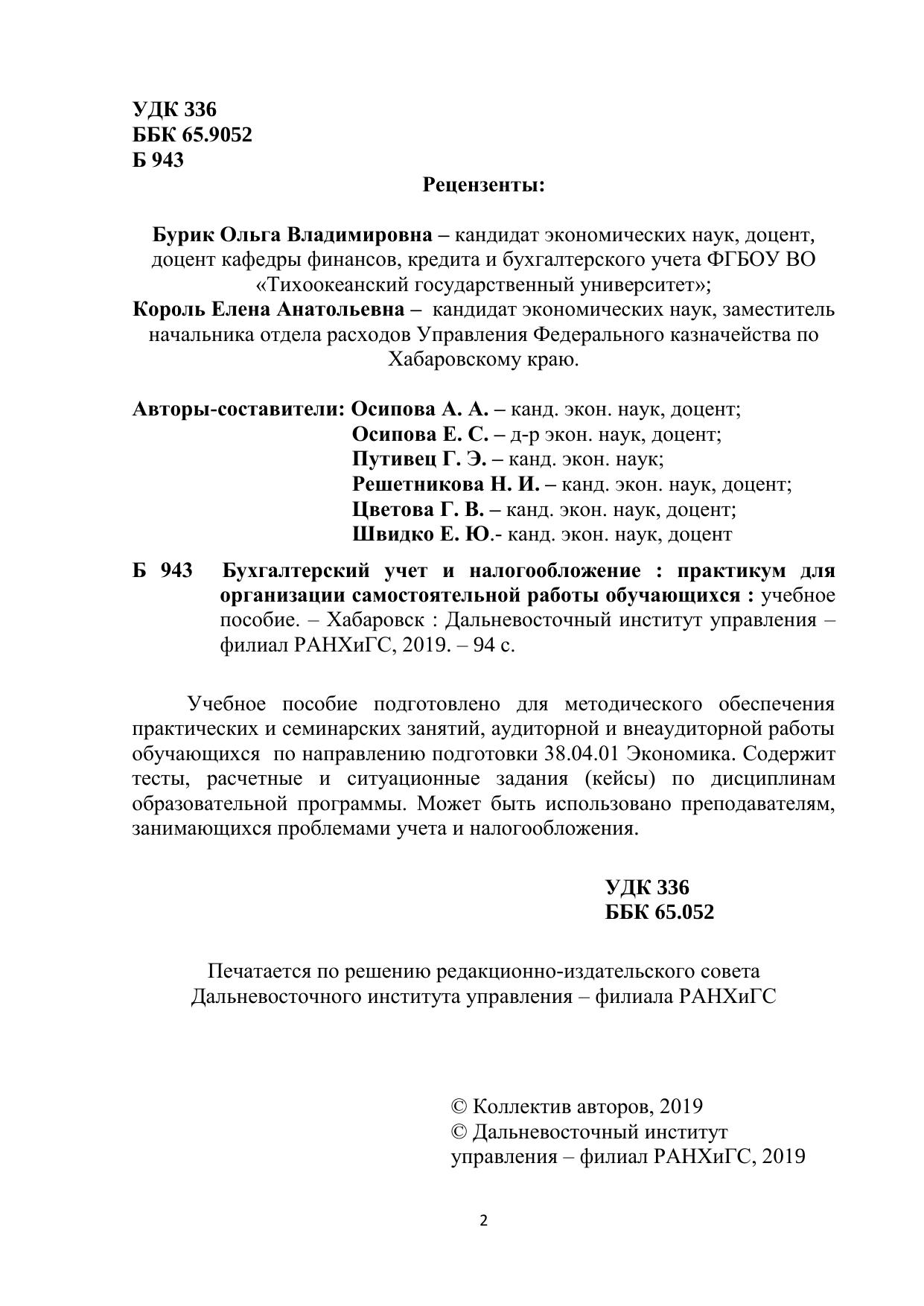 Учебное пособие подготовлено для методического обеспечения практических и семинарских занятий, аудиторной и внеаудиторной работы обучающихся по направлению подготовки 38.04.01 Экономика. Содержит тесты, расчетные и ситуационные задания (кейсы) по дисциплинам образовательной программы. Может быть использовано преподавателям, занимающихся проблемами учета и налогообложения.