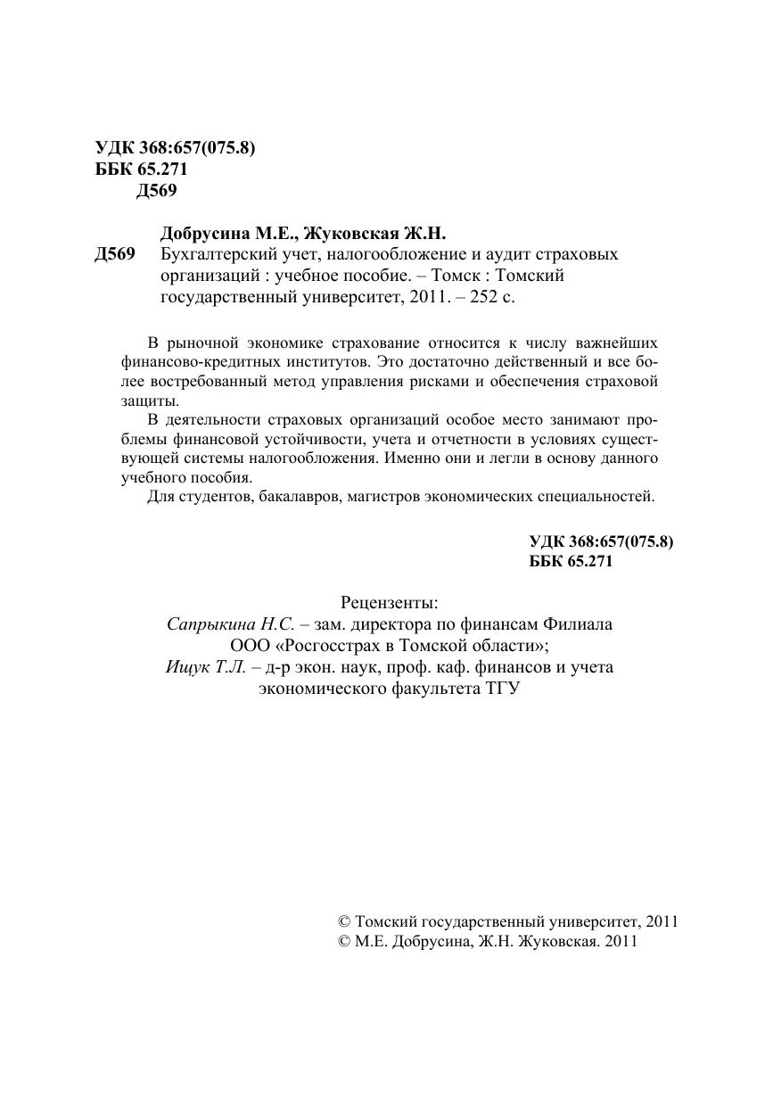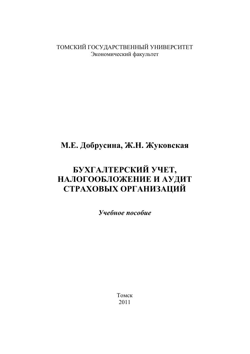 Бухгалтерский учет, налогообложение и аудит страховых организаций