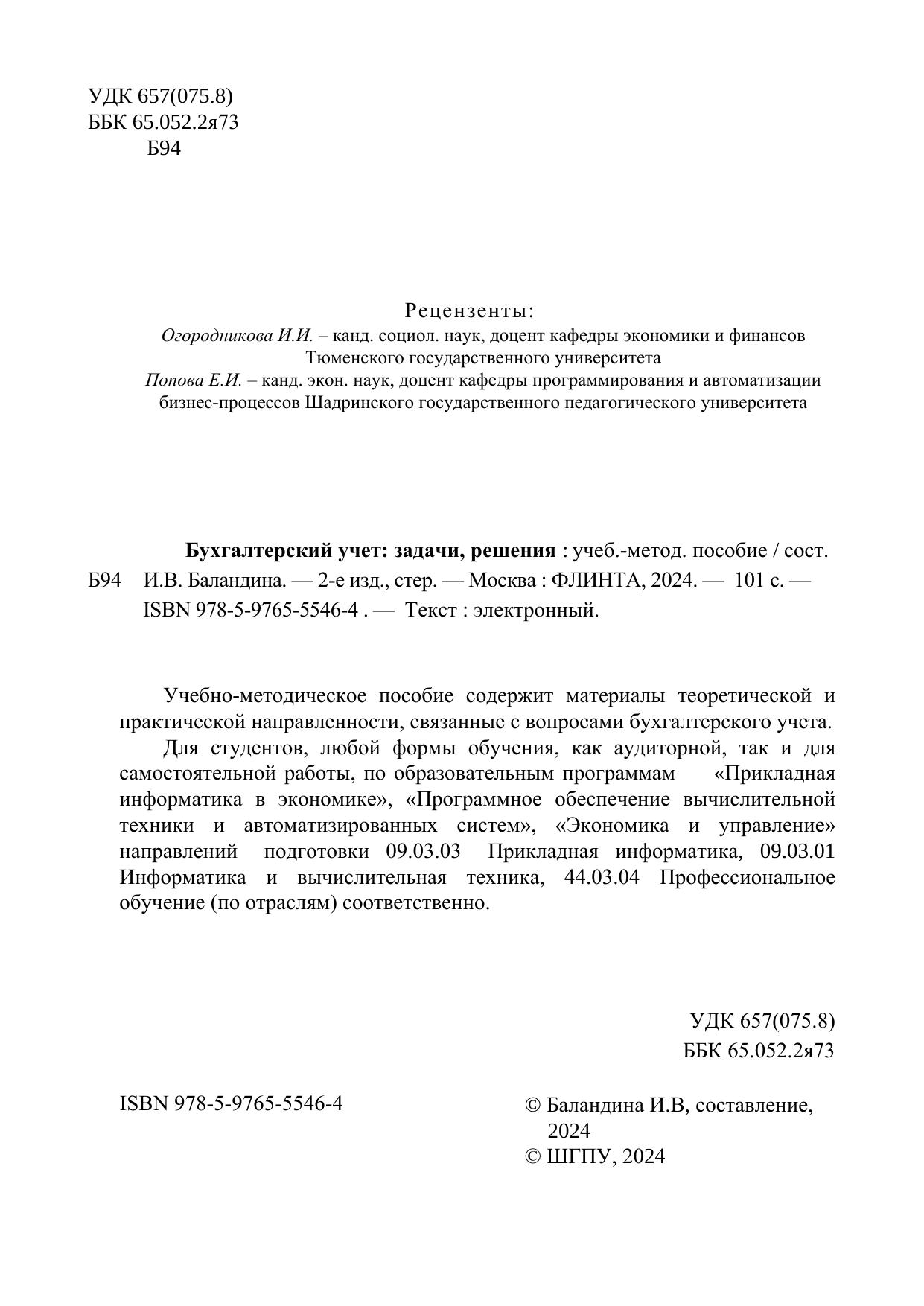 Учебно-методическое пособие содержит материалы теоретической и практической направленности, связанные с вопросами бухгалтерского учета. Для студентов, любой формы обучения, как аудиторной, так и для самостоятельной работы, по образовательным программам «Прикладная информатика в экономике», «Программное обеспечение вычислительной техники и автоматизированных систем», «Экономика и управление» направлений подготовки 09.03.03 Прикладная информатика, 09.03.01 Информатика и вычислительная техника, 44.03.04 Профессиональное обучение (по отраслям) соответственно.