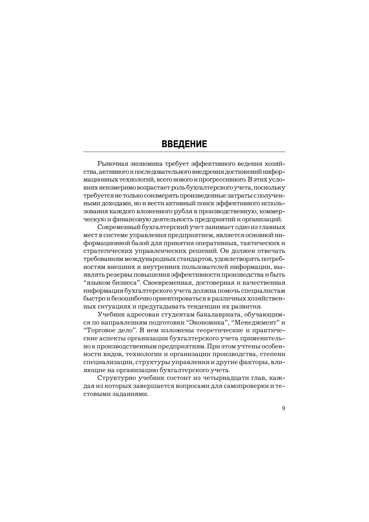 Учебник подготовлен в соответствии с Федеральным государственным образовательным стандартом высшего профессионального образования и соответствует всем современным требованиям подготовки кадров. В нем изложены теоретические основы и практические аспекты организации бухгалтерского учета применительно к производственным предприятиям. К несомненным достоинствам учебника можно отнести: обилие практических примеров, таблиц и схем, доступный и одновременно высокопрофессиональный язык изложения, проблемный характер рассмотрения учебных вопросов, что ориентирует студентов на принятие различных управленческих решений в процессе обучения. Для студентов бакалавриата, обучающихся по направлениям подготовки «Экономика», «Менеджмент» и «Торговое дело», а также преподавателей, научных работников и бухгалтеров-практиков.