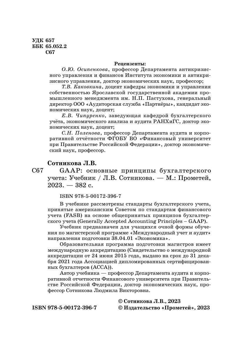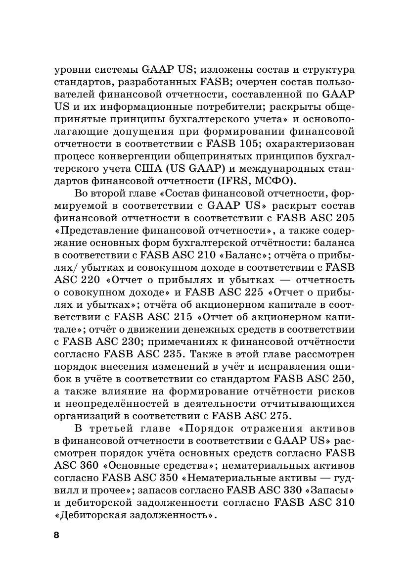 В учебнике рассмотрены стандарты бухгалтерского учета, принятые американским Советом по стандартам финансового учета (FASB) на основе общепринятых принципов бухгалтерского учета (Generally Accepted Accounting Principles – GAAP). Учебник предназначен для учащихся очной формы обучения по магистерской программе «Международный учет и аудит» направления подготовки 38.04.01 «Экономика». Образовательная программа подготовки магистров имеет международную аккредитацию (Свидетельство о международной аккредитации от 24 июня 2015 года, выдано на срок до 31 декабря 2021 года Ассоциацией дипломированных сертифицированных бухгалтеров (АССА)). Автор учебника — профессор Департамента аудита и корпоративной отчетности Финансового университета при Правительстве Российской Федерации, доктор экономических наук, профессор Сотникова Людмила Викторовна.
