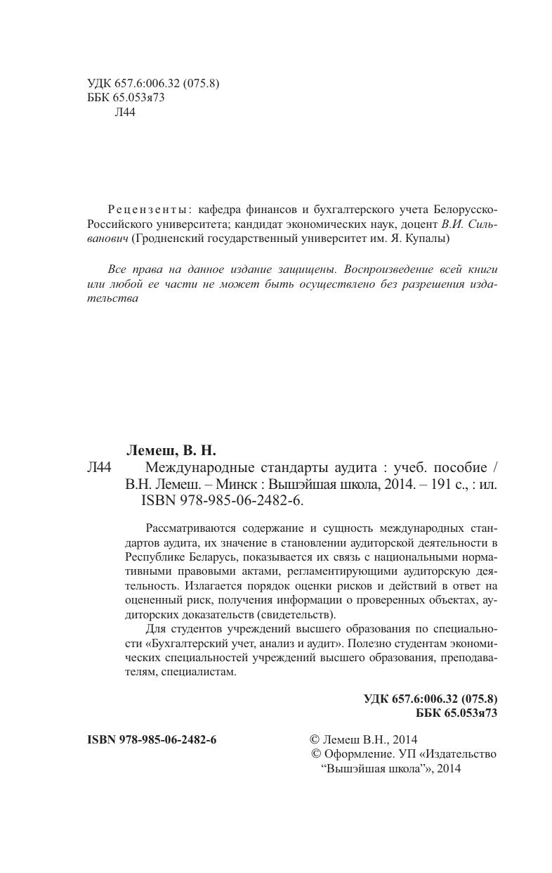 Рассматриваются содержание и сущность международных стандартов аудита, их значение в становлении аудиторской деятельности в Республике Беларусь, показывается их связь с национальными нормативными правовыми актами, регламентирующими аудиторскую деятельность. Излагается порядок оценки рисков и действий в ответ на оцененный риск, получение информации о проверяемых объектах, аудиторских доказательств (свидетельств). Для студентов экономических специальностей вузов, преподавателей, специалистов.