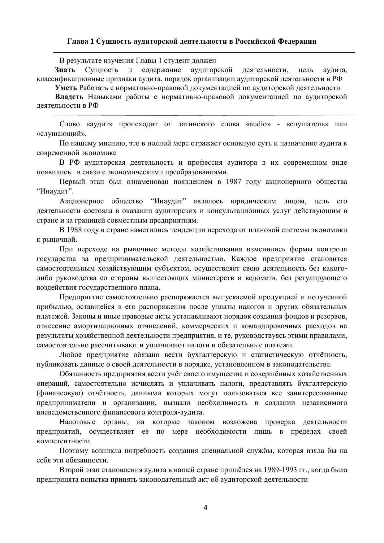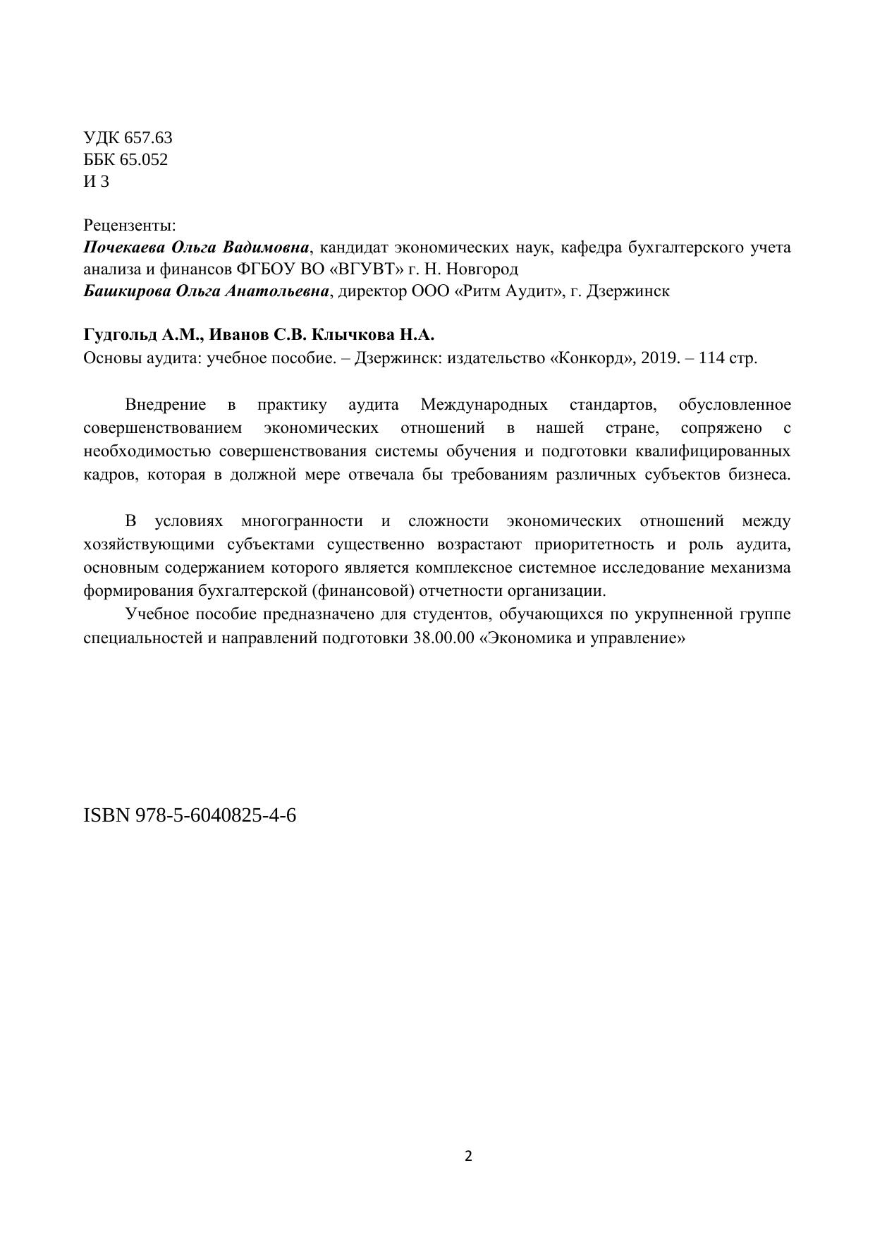 Внедрение в практику аудита Международных стандартов, обусловленное совершенствованием экономических отношений в нашей стране, сопряжено с необходимостью совершенствования системы обучения и подготовки квалифицированных кадров, которая в должной мере отвечала бы требованиям различных субъектов бизнеса. В условиях многогранности и сложности экономических отношений между хозяйствующими субъектами существенно возрастают приоритетность и роль аудита, основным содержанием которого является комплексное системное исследование механизма формирования бухгалтерской (финансовой) отчетности организации. Учебное пособие предназначено для студентов, обучающихся по укрупненной группе специальностей и направлений подготовки 38.00.00 «Экономика и управление»