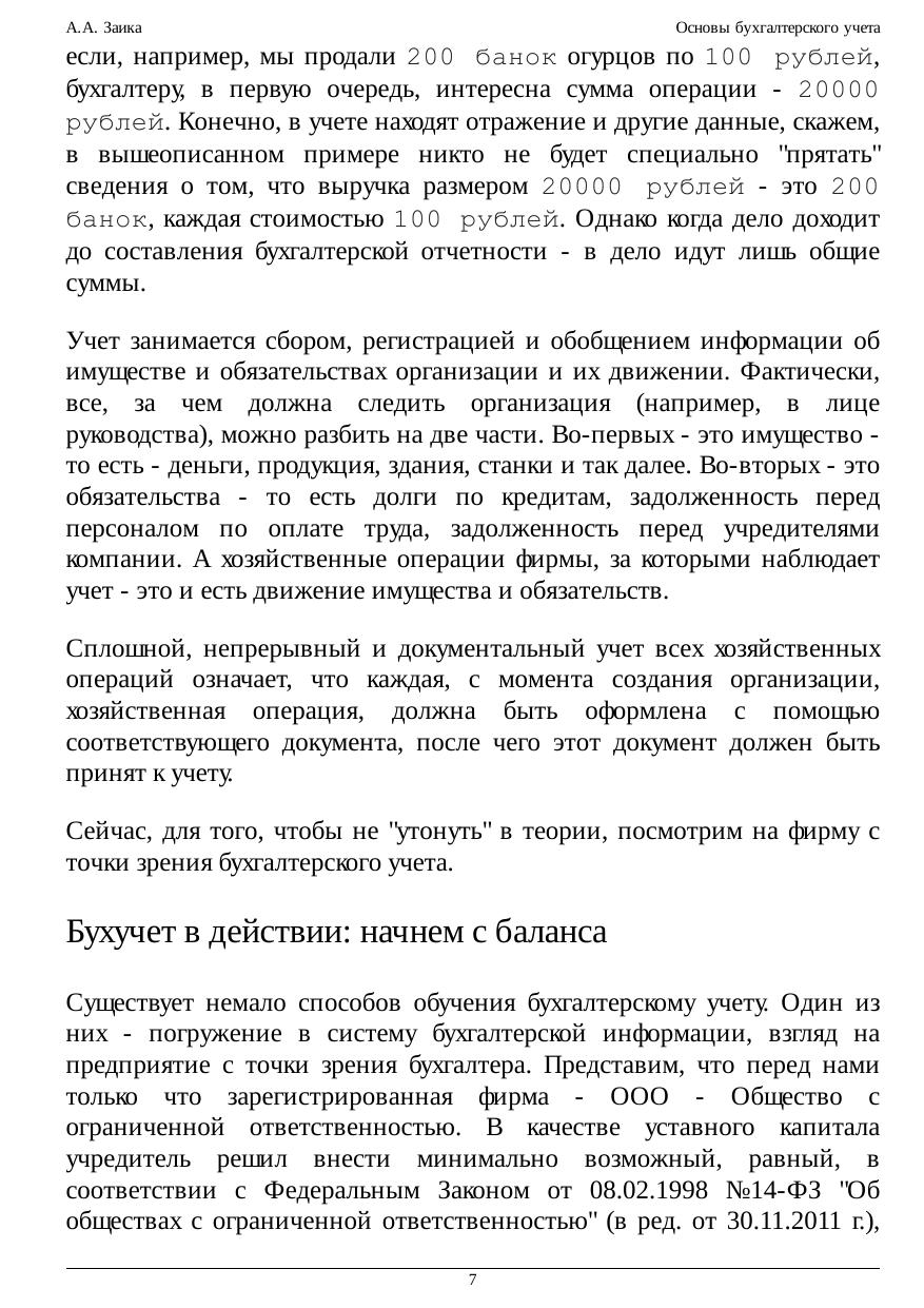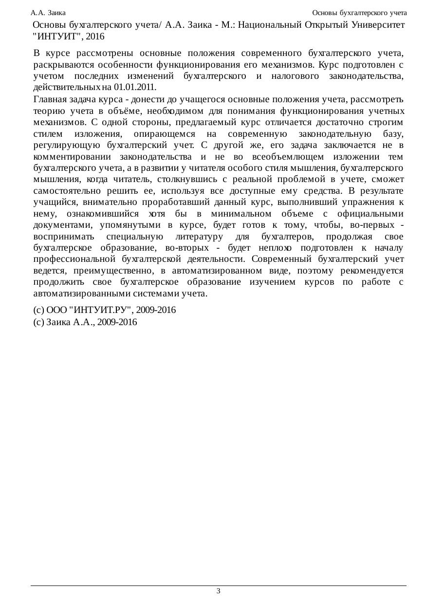 В курсе рассмотрены основные положения современного бухгалтерского учета, раскрываются особенности функционирования его механизмов. Курс подготовлен с учетом последних изменений бухгалтерского и налогового законодательства, действительных на 01.01.2011. Главная задача курса - донести до учащегося основные положения учета, рассмотреть теорию учета в объёме, необходимом для понимания функционирования учетных механизмов. С одной стороны, предлагаемый курс отличается достаточно строгим стилем изложения, опирающемся на современную законодательную базу, регулирующую бухгалтерский учет. С другой же, его задача заключается не в комментировании законодательства и не во всеобъемлющем изложении тем бухгалтерского учета, а в развитии у читателя особого стиля мышления, бухгалтерского мышления, когда читатель, столкнувшись с реальной проблемой в учете, сможет самостоятельно решить ее, используя все доступные ему средства. В результате учащийся, внимательно проработавший данный курс, выполнивший упражнения к нему, ознакомившийся хотя бы в минимальном объеме с официальными документами, упомянутыми в курсе, будет готов к тому, чтобы, во-первых -