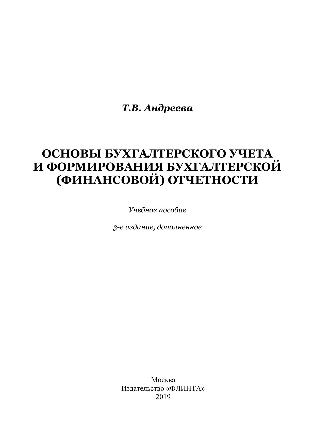 Основы бухгалтерского учета и формирования бухгалтерской (финансовой) отчетности