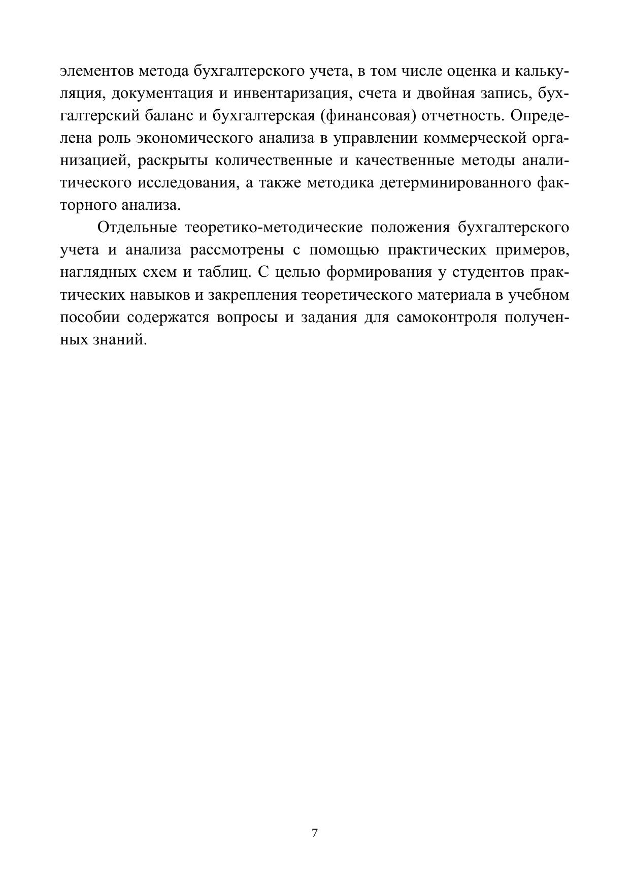 В учебном пособии раскрыты теоретико-методические основы бухгалтерского учета и экономического анализа деятельности коммерческих организаций. Материалы пособия учитывают действующую систему нормативного регулирования бухгалтерского учета в Российской Федерации. Теоретические положения бухгалтерского учета и анализа рассмотрены на практических примерах. Учебное пособие предназначено для студентов, обучающихся по направлениям подготовки 38.03.01 Экономика, 38.03.02 Менеджмент и другим экономическим направлениям бакалавриата; для учащихся экономических специальностей среднего профессионального образования; аспирантов; преподавателей учетных и общеэкономических дисциплин; начинающих бухгалтеров, менеджеров и руководителей коммерческих организаций.