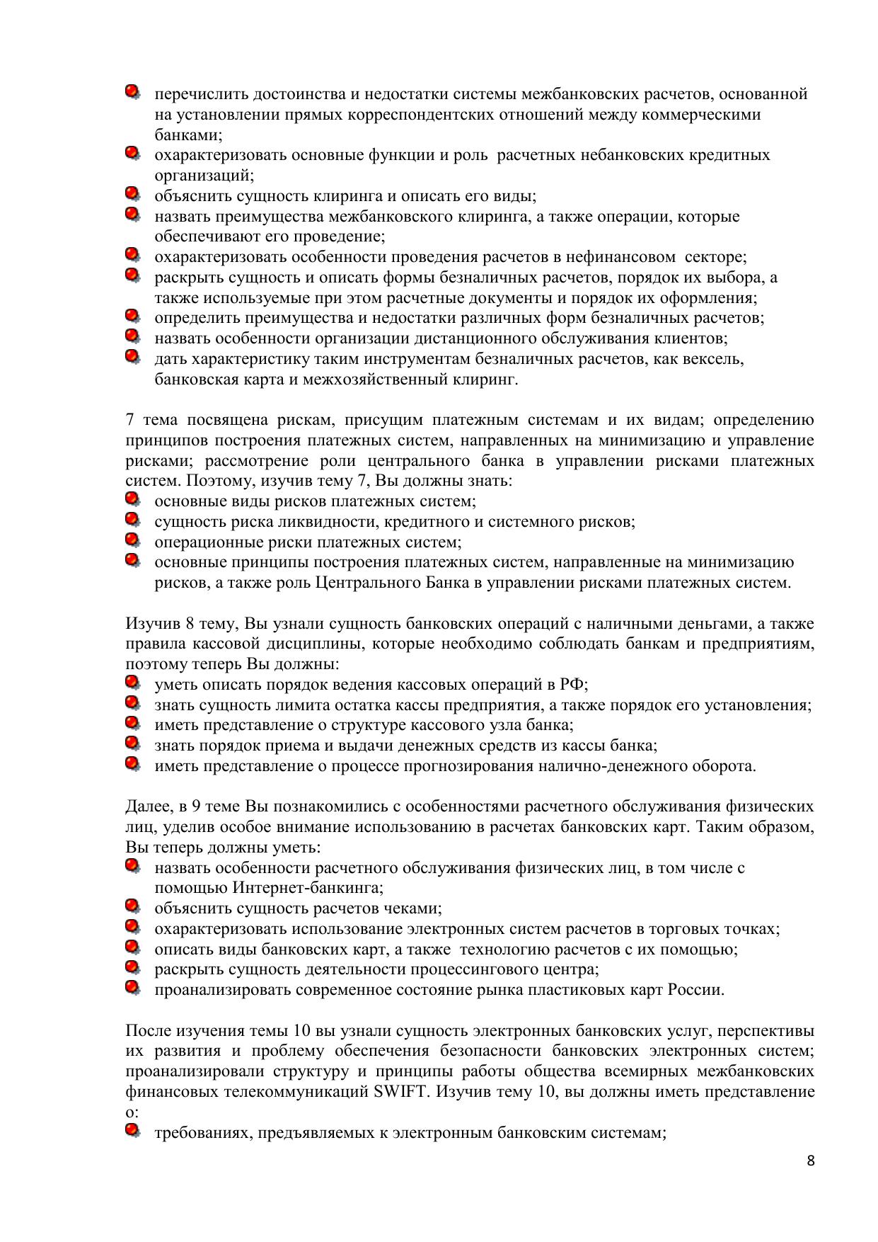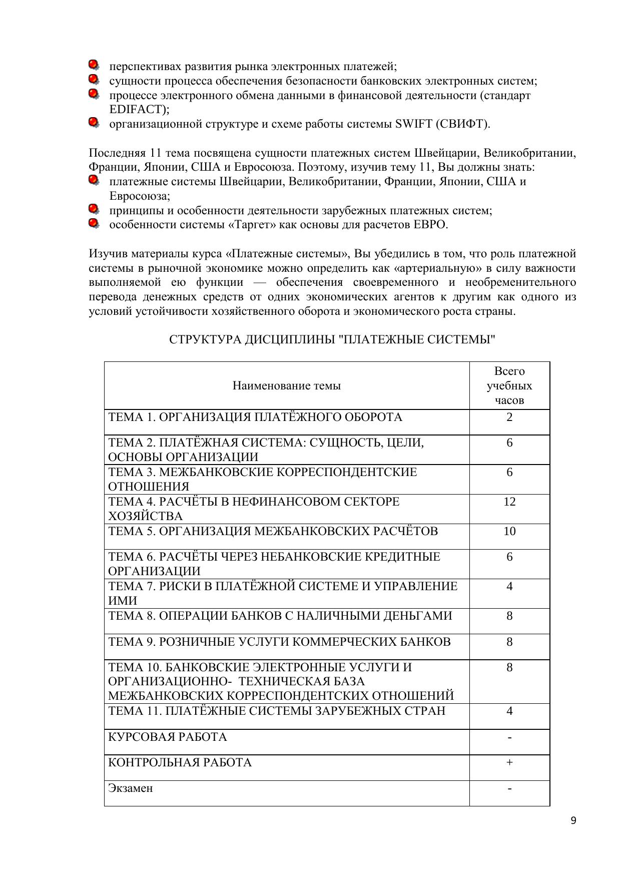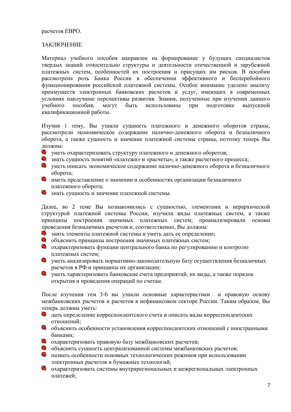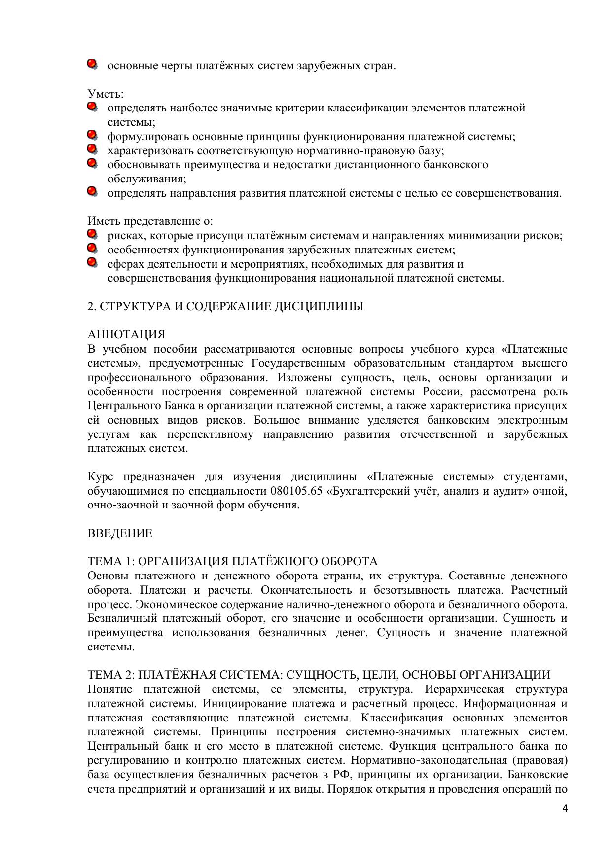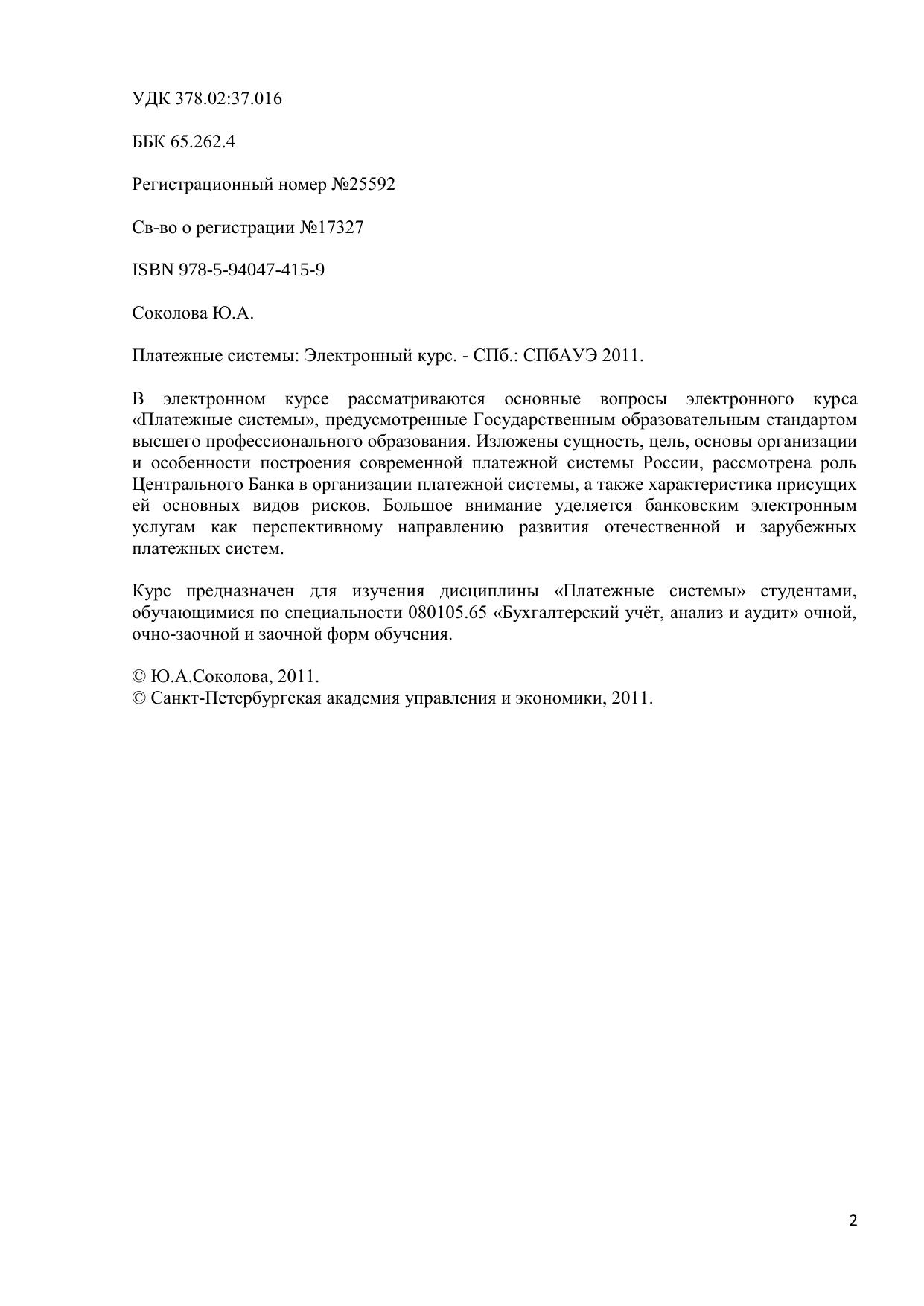 В электронном курсе рассматриваются основные вопросы электронного курса «Платежные системы», предусмотренные Государственным образовательным стандартом высшего профессионального образования. Изложены сущность, цель, основы организации и особенности построения современной платежной системы России, рассмотрена роль Центрального Банка в организации платежной системы, а также характеристика присущих ей основных видов рисков. Большое внимание уделяется банковским электронным услугам как перспективному направлению развития отечественной и зарубежных платежных систем. Курс предназначен для изучения дисциплины «Платежные системы» студентами, обучающимися по специальности 080105.65 «Бухгалтерский учёт, анализ и аудит» очной, очно-заочной и заочной форм обучения.