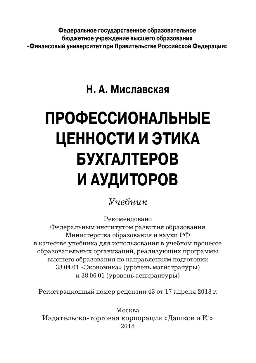 Профессиональные ценности и этика бухгалтеров и аудиторов