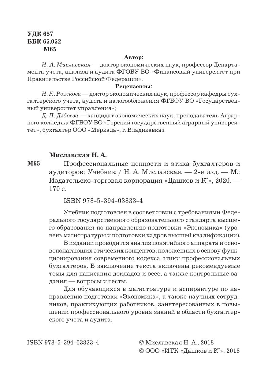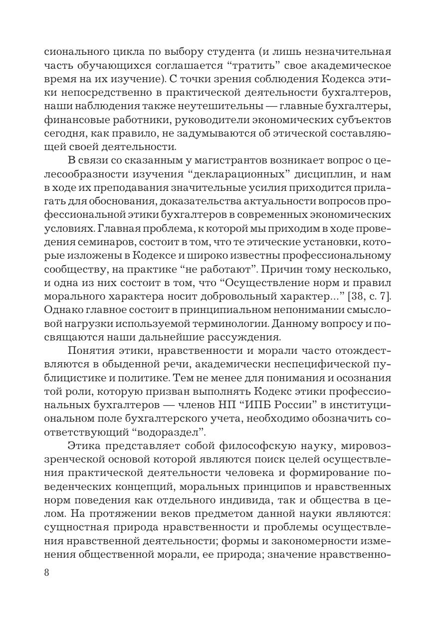 Учебник подготовлен в соответствии с требованиями ФГОС ВО по направлению подготовки "Экономика" (уровень магистратуры и подготовки кадров высшей квалификации). В издании проводится анализ понятийного аппарата и основополагающих этических концептов, положенных в основу функционирования современного кодекса этики профессиональных бухгалтеров. В заключение текста включены рекомендуемые темы для написания докладов и эссе, а также контрольные задания- вопросы и тесты. Для обучающихся в магистратуре и аспирантуре по направлению подготовки "Экономика", а также научных сотрудников, практикующих работников, заинтересованных в повышении профессионального уровня знаний в области бухгалтерского учета и аудита.