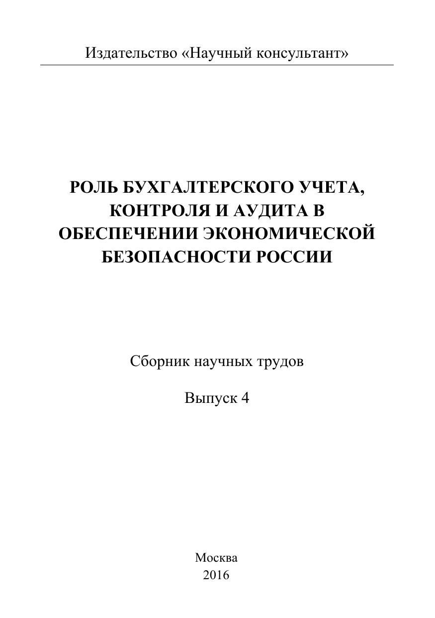 Роль бухгалтерского учета, контроля и аудита в обеспечении экономической безопасности России. Сборник научных трудов. Выпуск 4