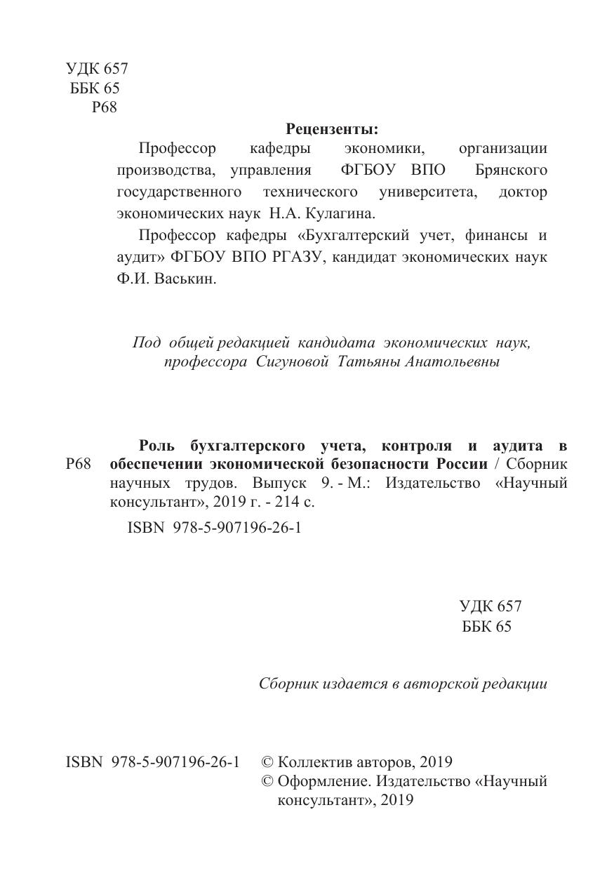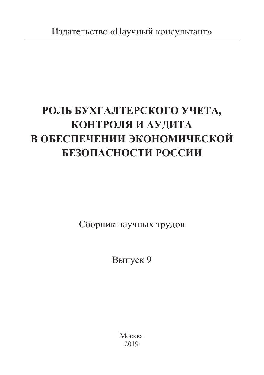 Роль бухгалтерского учета, контроля и аудита в обеспечении экономической безопасности России. Выпуск 9