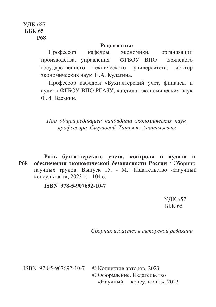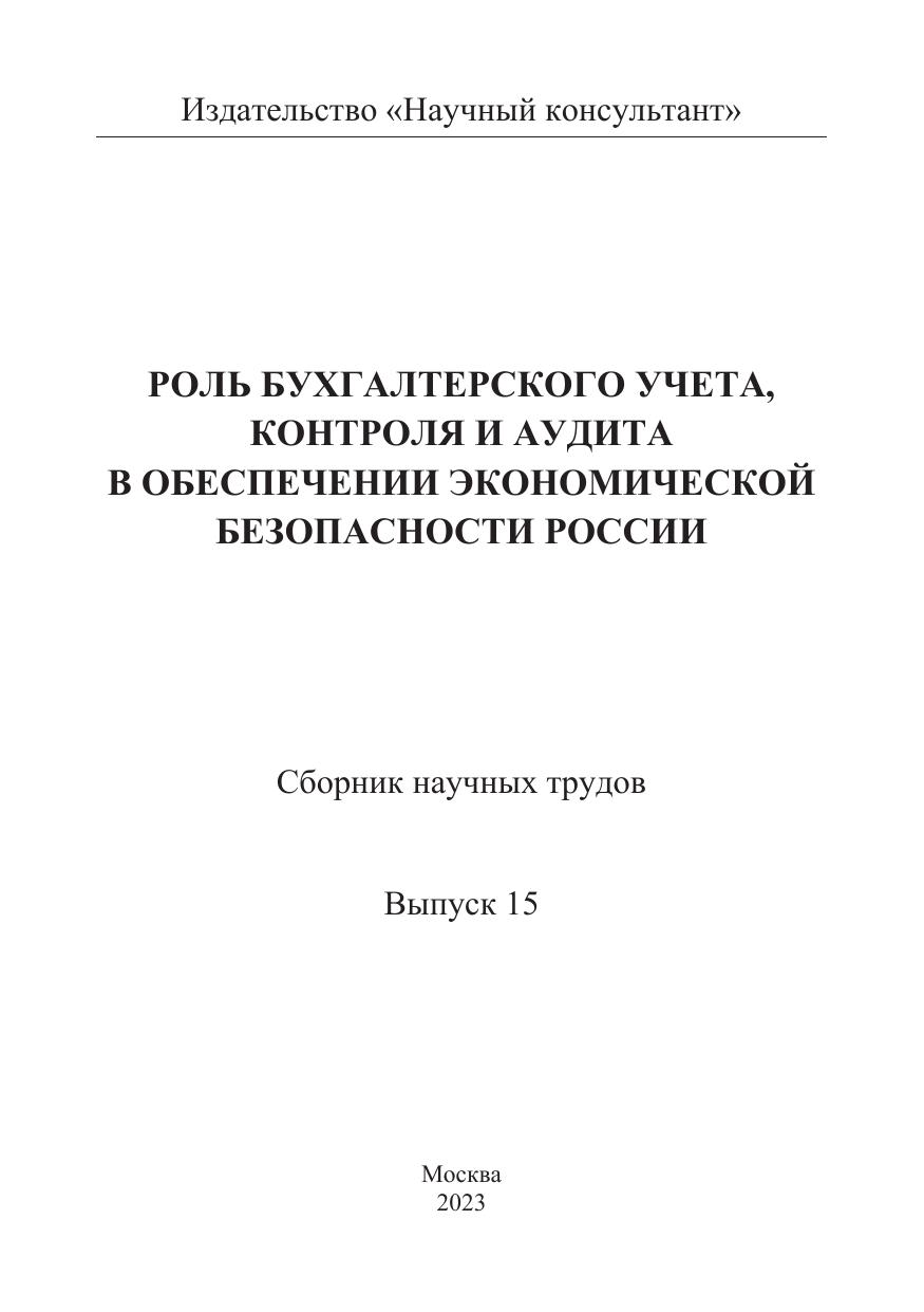 Роль бухгалтерского учета, контроля и аудита в обеспечении экономической безопасности России. Сборник научных трудов. Выпуск 15
