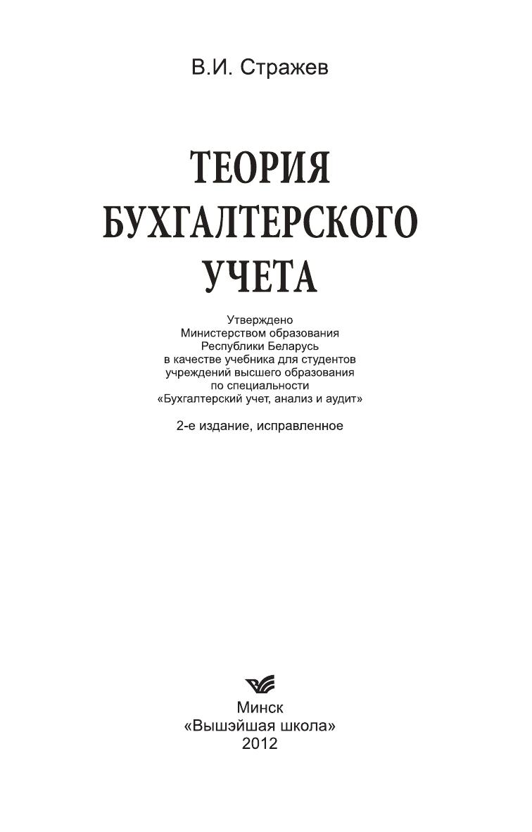 Рассматриваются теоретические положения бухгалтерского учета: его сущность, объект, предмет, цель, основные задачи, место и роль в системе управления, метод, методология и методики. Излагаются двойная запись, стоимостное измерение объекта бухгалтерского учета в статике и кругообороте хозяйственных средств, первичная регистрация хозяйственных процессов, учетные регистры, формы бухгалтерского учета, основы его отчетности и организации, проблемы развития теории бухгалтерского. Приводятся точки зрения различных авторов по рассматриваемым вопросам. Для студентов экономических специальностей вузов. Может быть полезно магистрантам, аспирантам, преподавателям и специалистам.