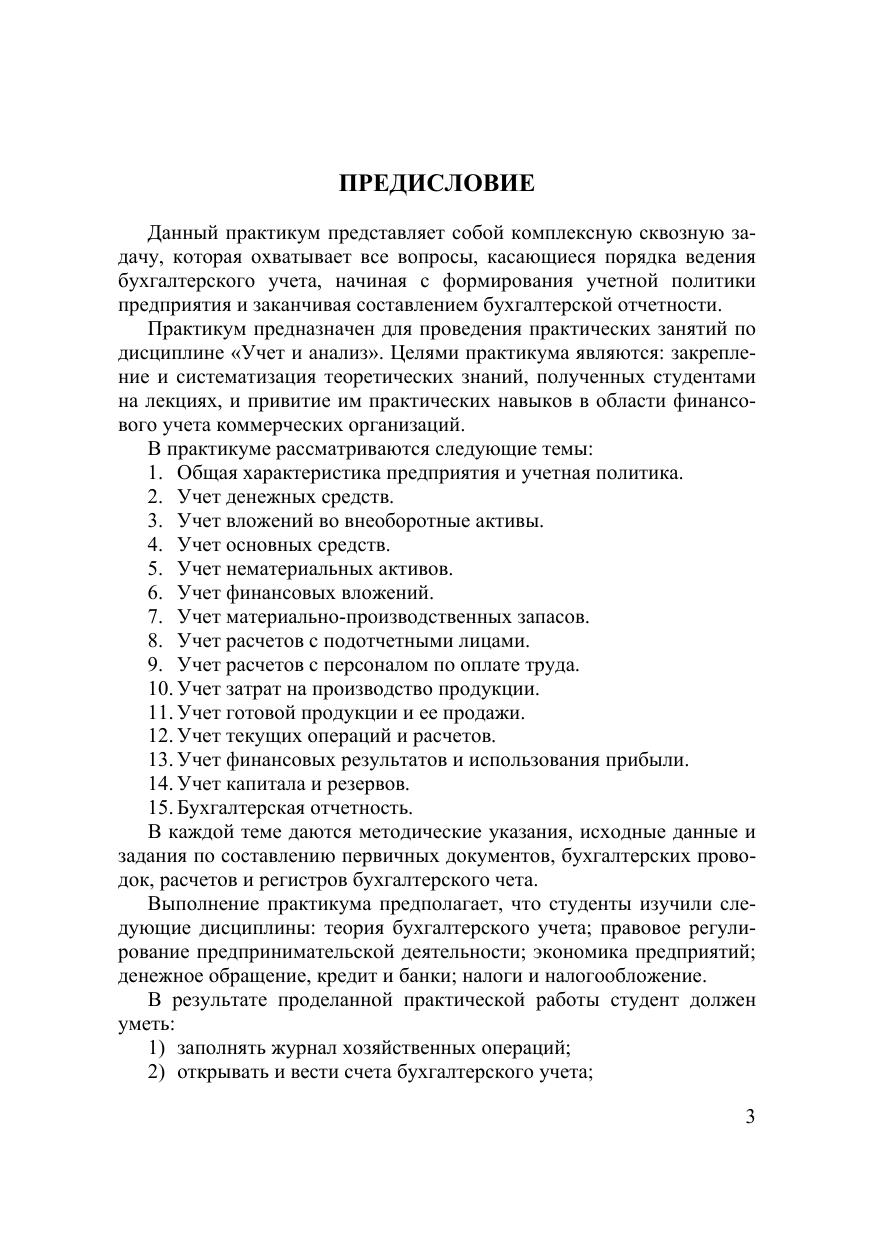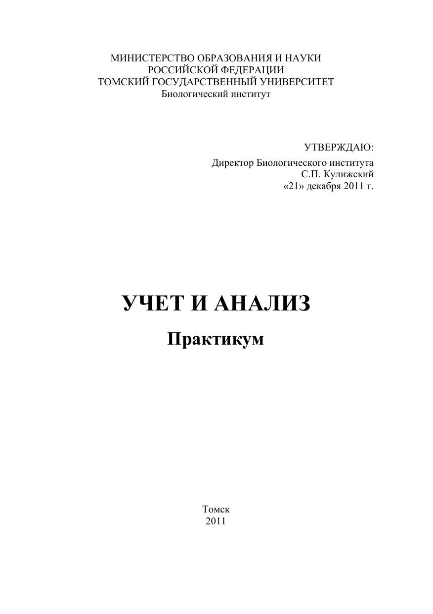 Учебно-методические пособие по курсу «Учет и анализ» предназначено для студентов Биологического института (направление подготовки – 080200 «Менеджмент», профиль подготовки – «Производственный менеджмент (АПК)»), очной формы обучения Томского государственного университета. Пособие содержит лабораторный практикум, который представляет собой комплексную сквозную задачу. Практикум позволяет привить практические навыки ведения бухгалтерского учета на примере модели предприятия.