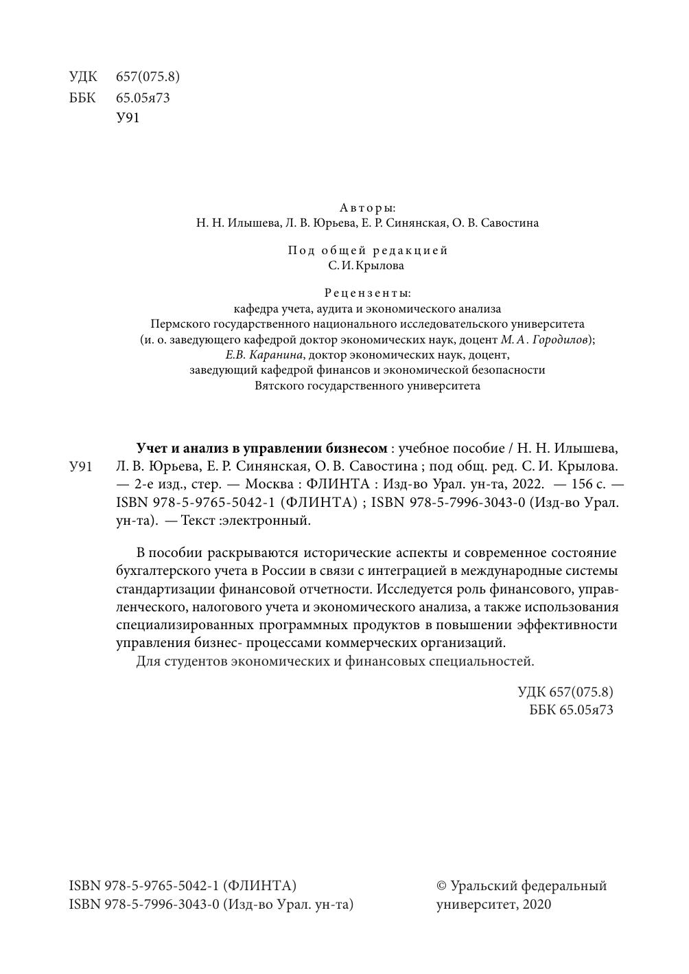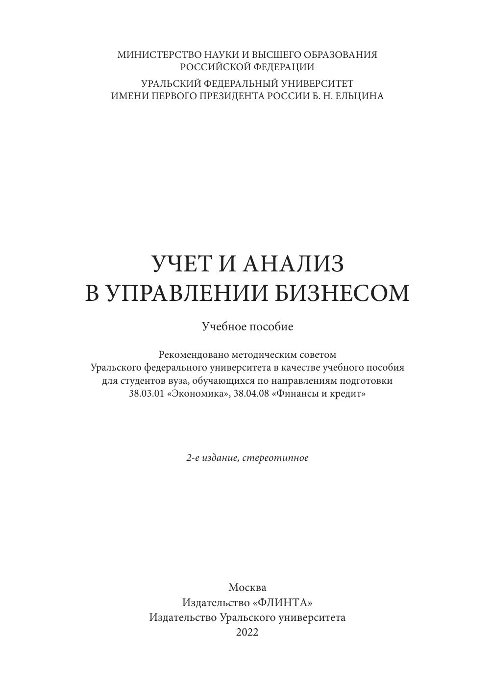Учет и анализ в управлении бизнесом