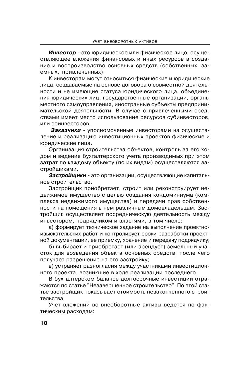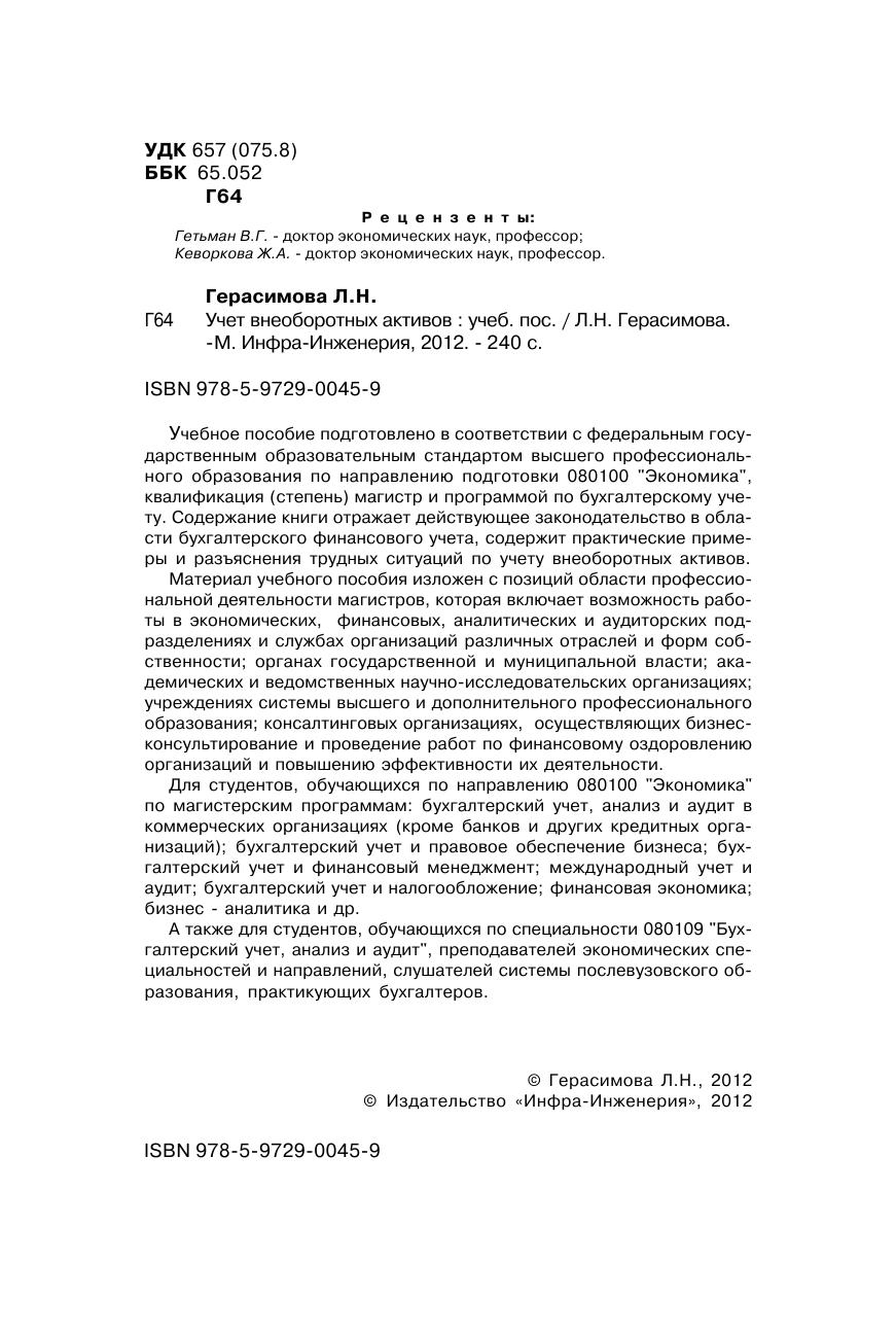 Учебное пособие подготовлено в соответствии с федеральным государственным образовательным стандартом высшего профессионального образования по направлению подготовки 080100 «Экономика», квалификация (степень) магистр и программой по бухгалтерскому учету. Содержание книги отражает действующее законодательство в области бухгалтерского финансового учета, содержит практические примеры и разъяснения трудных ситуаций по учету внеоборотных активов. Материал учебного пособия изложен с позиций области профессиональной деятельности магистров, которая включает возможность работы в экономических, финансовых, аналитических и аудиторских подразделениях и службах организаций различных отраслей и форм собственности органах государственной и муниципальной власти академических и ведомственных научно-исследовательских организациях учреждениях системы высшего и дополнительного профессионального образования консалтинговых организациях, осуществляющих бизнес-консультирование и проведение работ по финансовому оздоровлению организаций и повышению эффективности их деятельности. Для студентов, обучающихся по направлению 080100 «Экономика» по магистерским программам: бухгалтерский учет, анализ и аудит в коммерческих организациях (кроме банков и других кредитных организаций) бухгалтерский учет и правовое обеспечение бизнеса бухгалтерский учет и финансовый менеджмент международный учет и аудит бухгалтерский учет и налогообложение финансовая экономика бизнес-аналитика и др. А также для студентов, обучающихся по специальности 080109 «Бухгалтерский учет, анализ и аудит», преподавателей экономических специальностей и направлений, слушателей системы послевузовского образования, практикующих бухгалтеров.