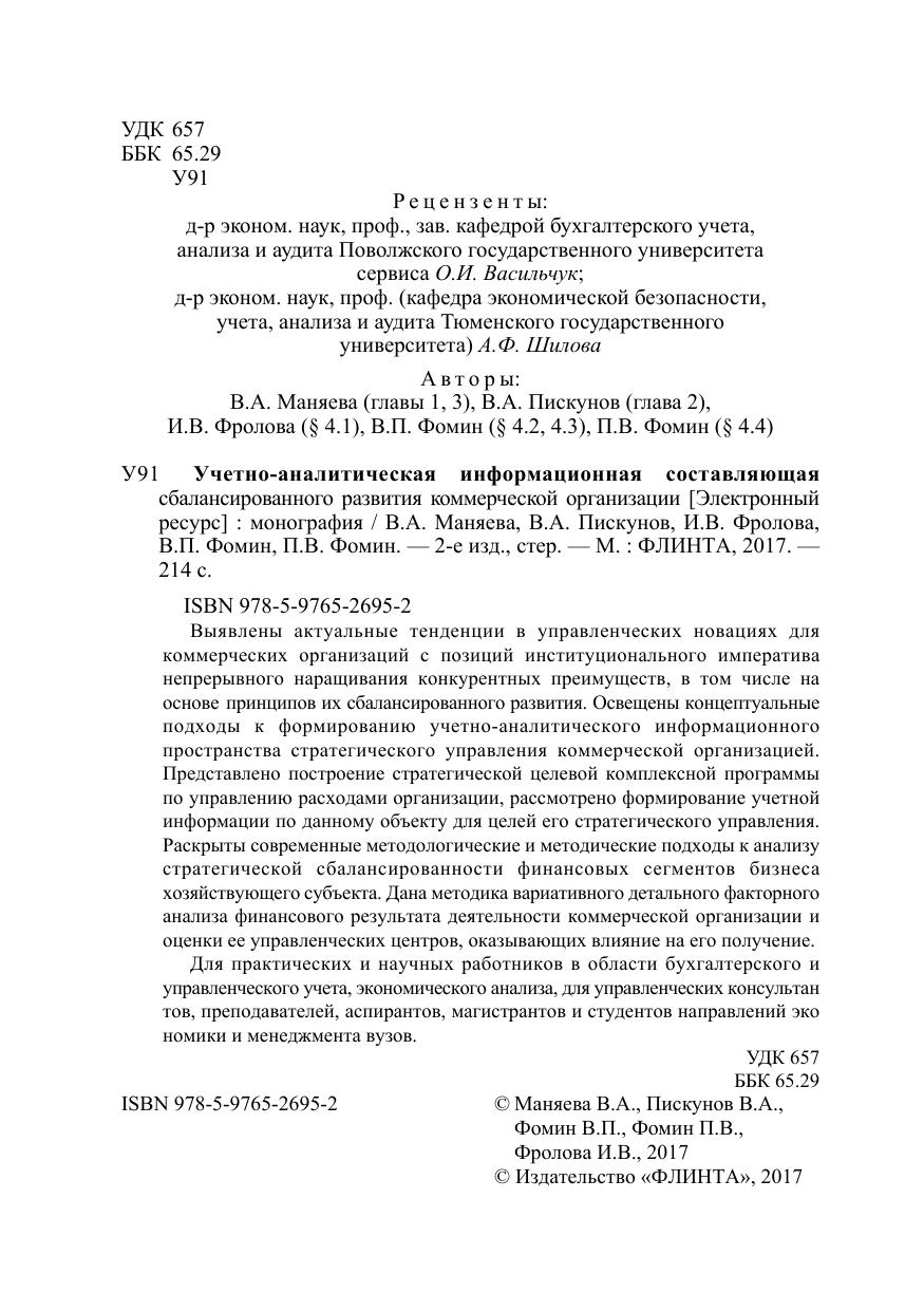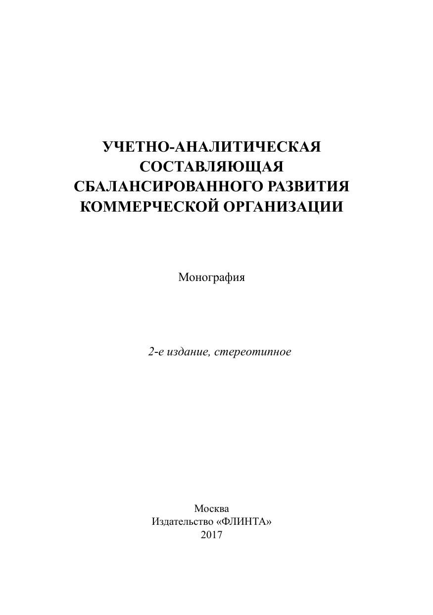 Учетно-аналитическая информационная составляющая сбалансированного развития коммерческой организации : монография