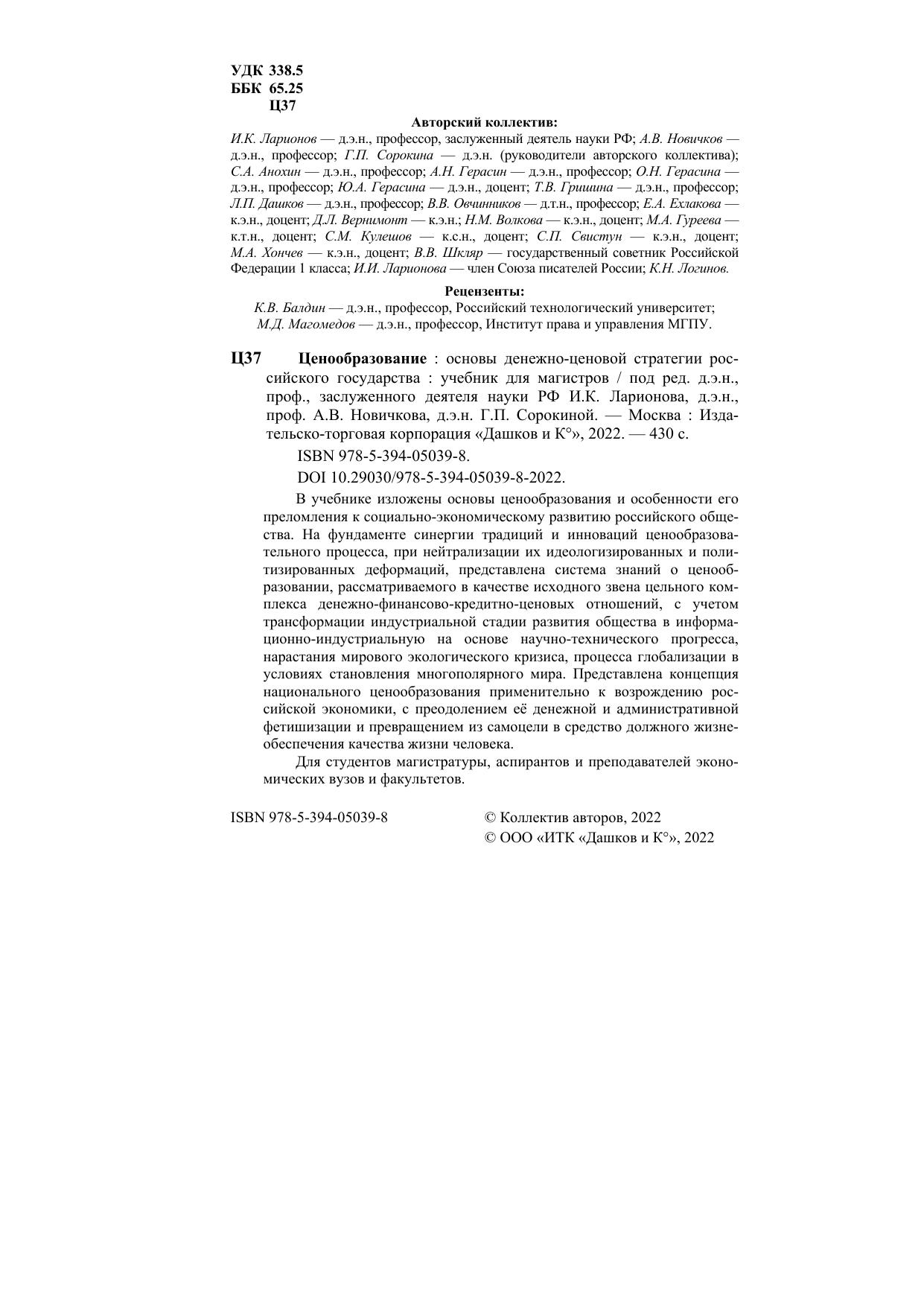 В учебнике изложены основы ценообразования и особенности его преломления к социально-экономическому развитию российского общества. На фундаменте синергии традиций и инноваций ценообразовательного процесса, при нейтрализации их идеологизированных и политизированных деформаций, представлена система знаний о ценообразовании, рассматриваемого в качестве исходного звена цельного комплекса денежно-финансово-кредитно-ценовых отношений, с учетом трансформации индустриальной стадии развития общества в информационно-индустриальную на основе научно-технического прогресса, нарастания мирового экологического кризиса, процесса глобализации в условиях становления многополярного мира. Представлена концепция национального ценообразования применительно к возрождению российской экономики, с преодолением её денежной и административной фетишизации и превращением из самоцели в средство должного жизнеобеспечения качества жизни человека.