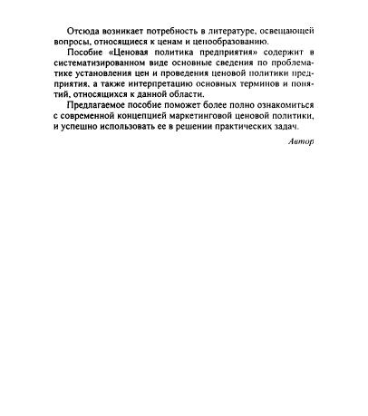 Изложены основные понятия и категории, принципы и методы, определяющие эффективность проведения ценовой политики, направленной на достижение поставленных оперативных и стратегических целей в маркетинге предприятия. Рассматриваются процессы формирования ценовой политики предприятия. Описывается последовательность процедуры обоснования уровня цен на этапе анализа ценовой точки спроса. Освещаются вопросы построения системы связанных цен на основе нелинейного ценообразования. Студентам специальностей "Маркетинг", "Коммерция", "Логистика", преподавателям, практическим работникам, а также всем интересующимся вопросами ценообразования и ценовой политики в маркетинге предприятия.