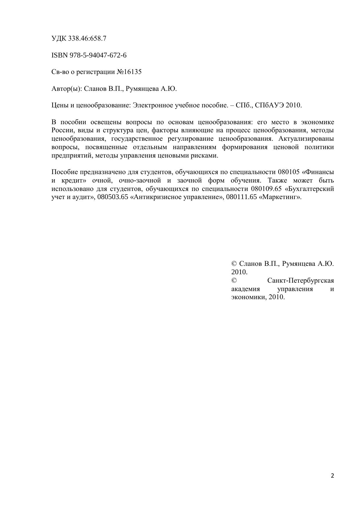 В пособии освещены вопросы по основам ценообразования: его место в экономике России, виды и структура цен, факторы влияющие на процесс ценообразования, методы ценообразования, государственное регулирование ценообразования. Актуализированы вопросы, посвященные отдельным направлениям формирования ценовой политики предприятий, методы управления ценовыми рисками. Пособие предназначено для студентов, обучающихся по специальности 080105 «Финансы и кредит» очной, очно-заочной и заочной форм обучения. Также может быть использовано для студентов, обучающихся по специальности 080109.65 «Бухгалтерский учет и аудит», 080503.65 «Антикризисное управление», 080111.65 «Маркетинг». Электронное учебное пособие