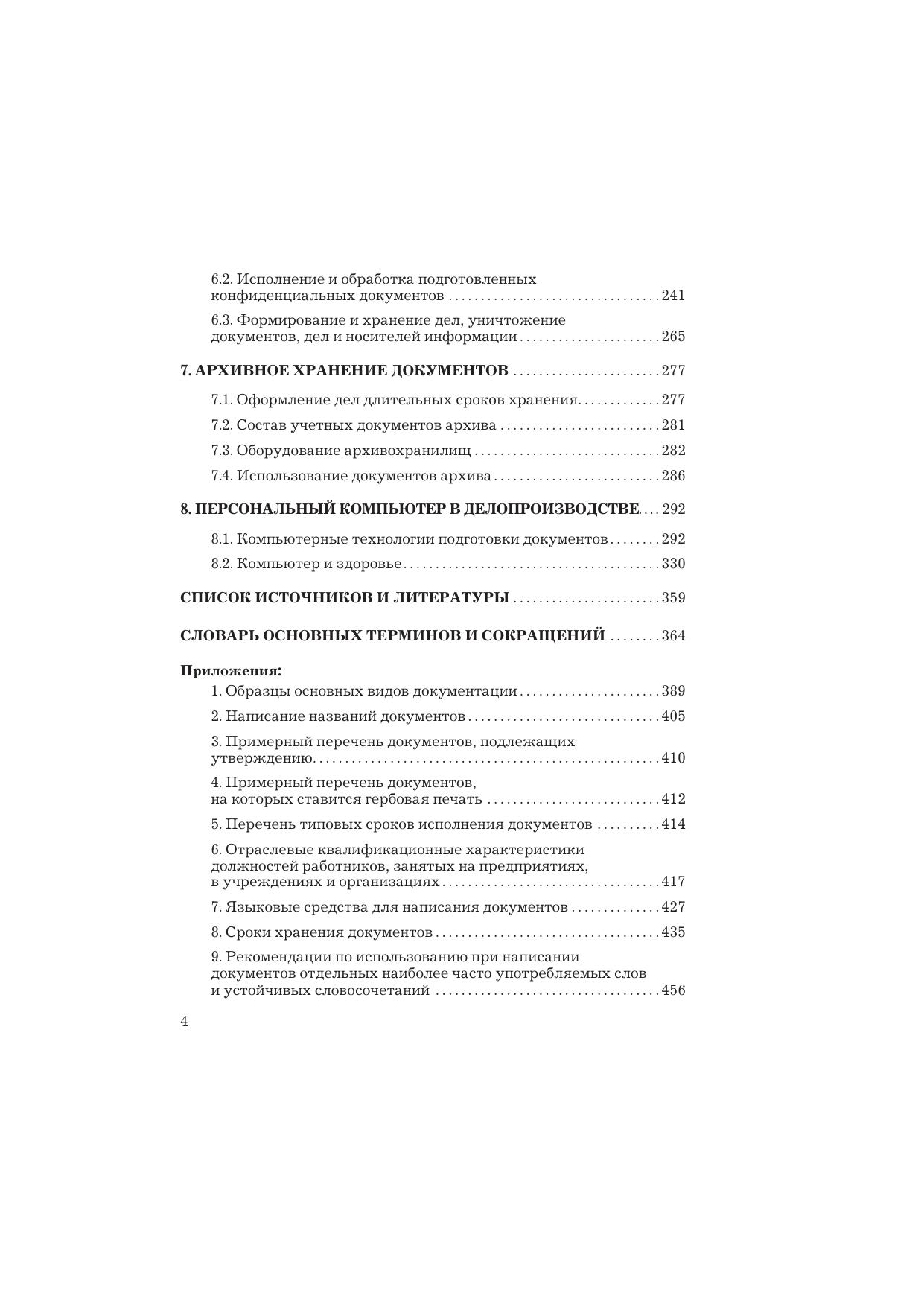 Книга содержит информацию, необходимую для делопроизводителей, секретарей, о правилах составления документов по действующим стандартам. Рассмотрены нормативно-методическая база, основные понятия и терминология, общие правила работы с документами, включая компьютерные технологии подготовки текстовых и табличных документов. Дана характеристика особенностей подготовки, оформления и ведения всех видов внутренних документов, договоров, кадровой документации и внешней деловой переписки. Раскрыты способы и методы оптимизации документооборота, обеспечения конфиденциальности информации. Представлены справочные данные, необходимые для подготовки деловых документов и ведения переписки, для работы с персональным компьютером, решения других вопросов, возникающих в повседневной работе делопроизводителя. Для секретарей, секретарей-референтов, работников служб делопроизводства, студентов высших учебных заведений.